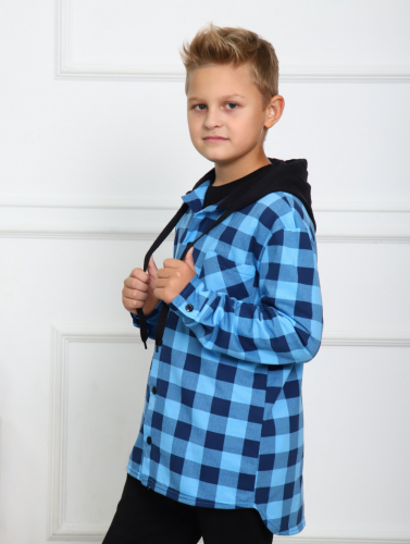 Детская рубашка с начесом. Рубашка в клетку удлиненная на пуговицах и с капюшоном на завязках. Толстовка детская утепленная с длинными спущенными рукавами на манжете, на груди накладной карман. Изготовлена из натурального гипоаллергенного 100% хлопка, материал - футер с начёсом. Кофта с пуговицами подойдет для занятий спортом, его можно использовать как одежду для дома, как домашний костюм, в школу, повседневный костюм - одежда для улицы на каждый день, костюм на дачу, как курточку в прохладную погоду. Базовая детская вещь незаменимая для детского гардероба.