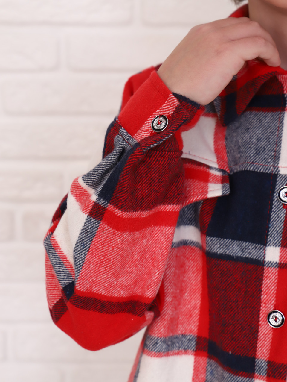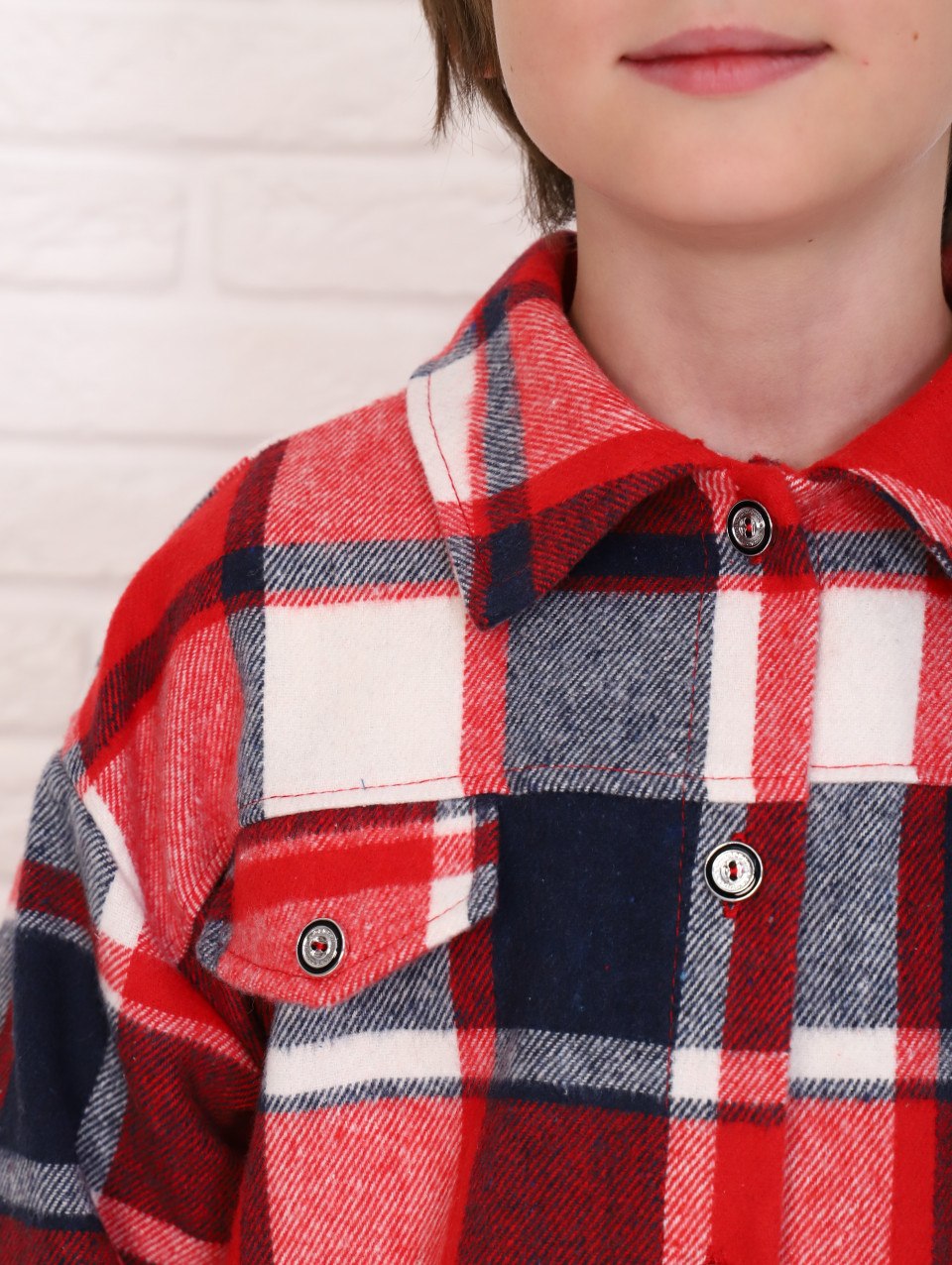 Детская рубашка, утепленная, демисезонная, с легким начесом, материал - фланель, без подкладки. Свободный крой с заниженной линией плеча не сковывает движения, позволяя ребенку быть активным. Модель дополнена отложным воротником и длинными рукавами с манжетами на пуговицах. Два накладной кармана-обманки на груди. Детская утепленная рубашка в клетку для девочки или для мальчика станет отличным дополнением гардероба Вашего ребенка. Теплая рубашка подойдет для активного отдыха, спорта, прогулок и праздников.