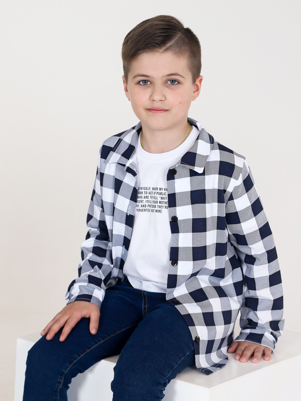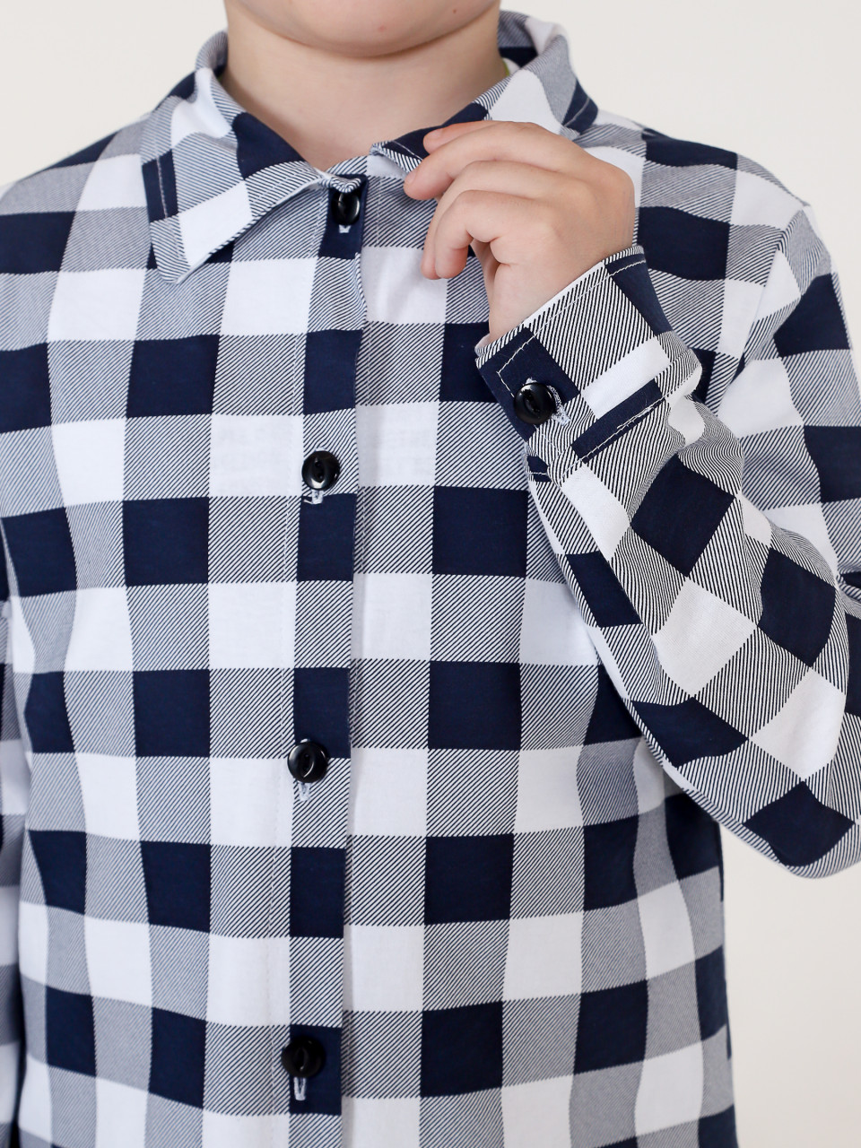 Рисунок в виде клетки придает рубашке яркость и необычность. Детская рубашка станет отличным подарком на любой праздник. Таблица размеров представлена в доп.фото.