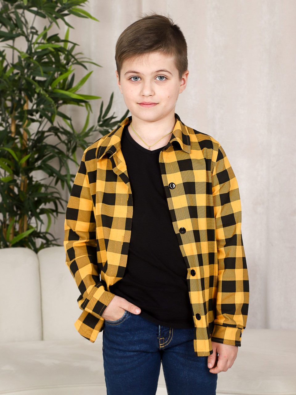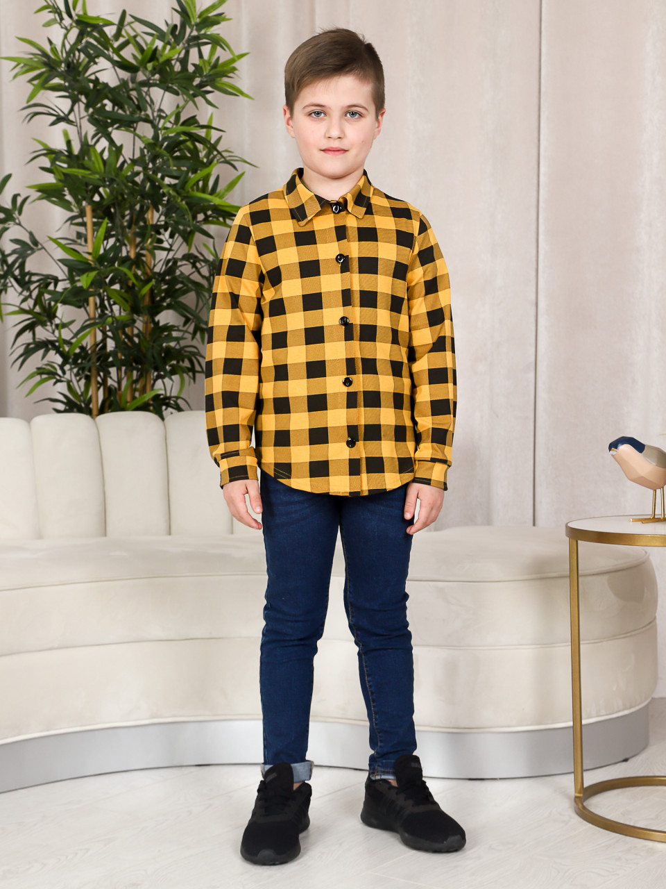 Рисунок в виде клетки придает рубашке яркость и необычность. Детская рубашка станет отличным подарком на любой праздник. Таблица размеров представлена в доп.фото.