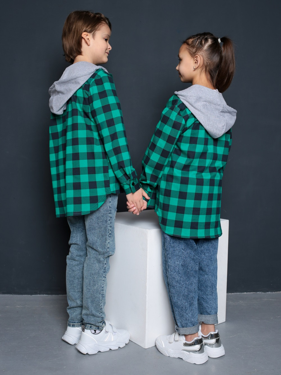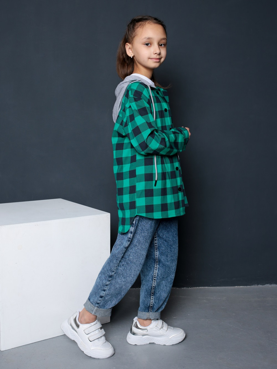Детская рубашка с капюшоном в клетку выполнена из 100% хлопка. Кофта свободная, слегка оверсайз. Трендовая рубашка для мальчика на полочке с кармашком и c застёжкой на пуговицы. Капюшон с завязками. Рубашка с длинным рукавом прекрасно сочетается с однотонной футболкой, джинсами, брюками, кроссовками.