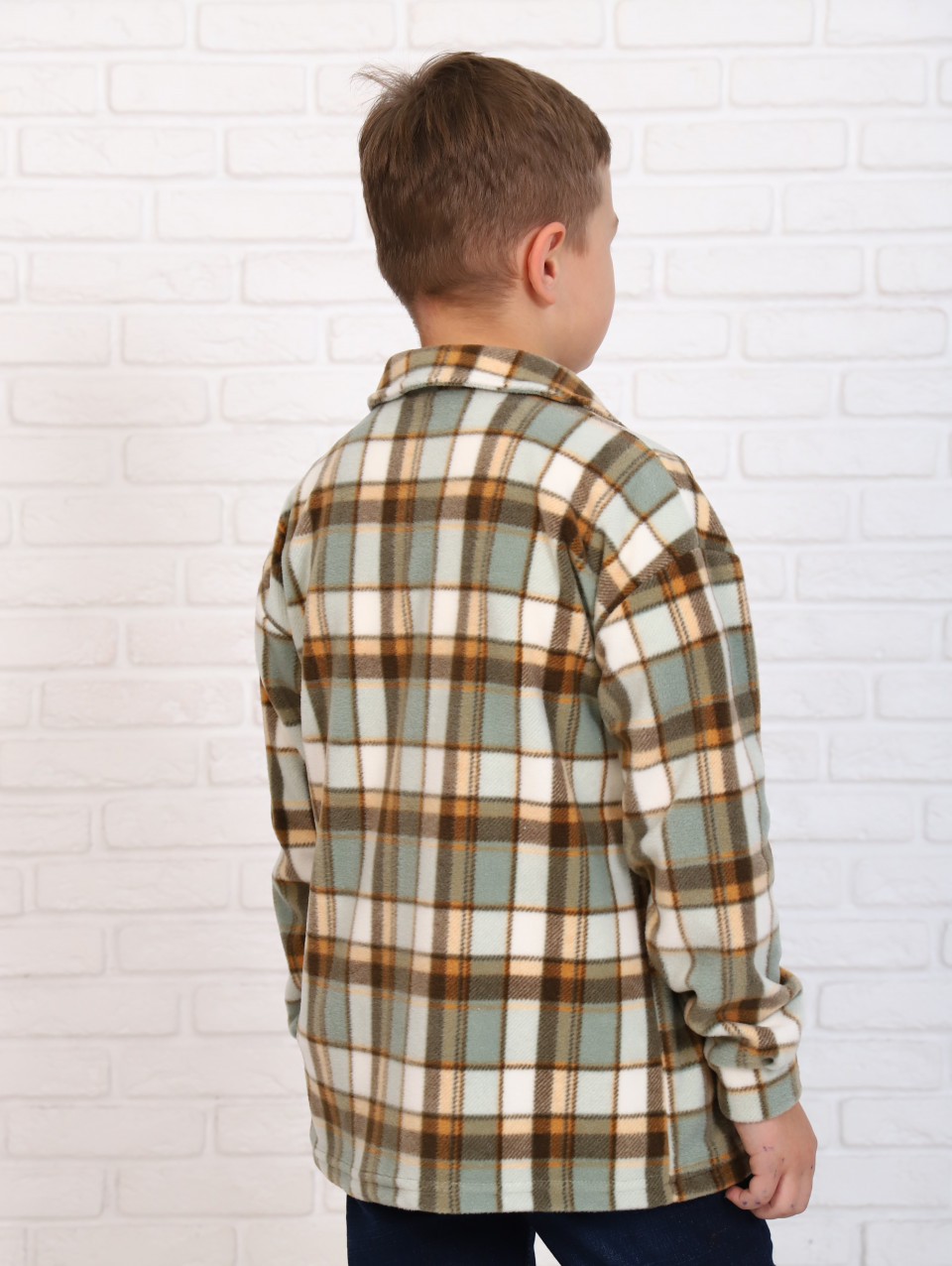 Детская рубашка, утепленная, демисезонная, с легким начесом, материал - флис, без подкладки. Свободный крой с заниженной линией плеча не сковывает движения, позволяя ребенку быть активным. Модель дополнена отложным воротником и длинными рукавами с манжетами на пуговицах. Два накладной кармана-обманки на груди. Детская утепленная рубашка для девочки или для мальчика станет отличным дополнением гардероба Вашего ребенка. Теплая рубашка подойдет для активного отдыха, спорта, прогулок и праздников.