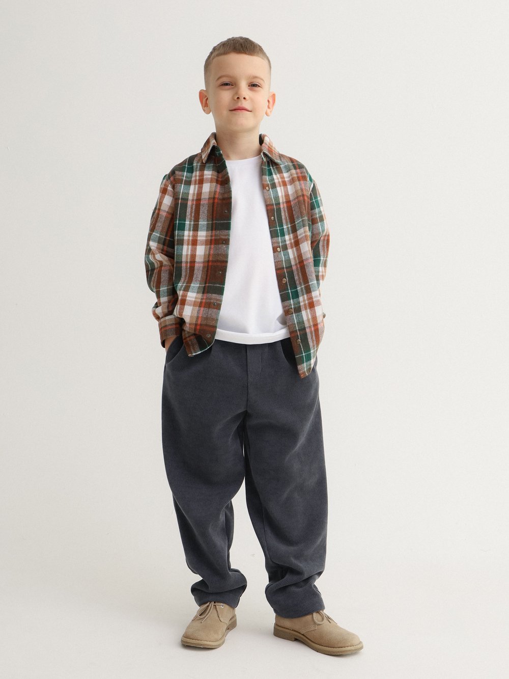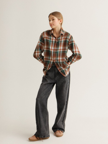 Рубашка из фланели с застежкой на кнопки и отложным воротничком.