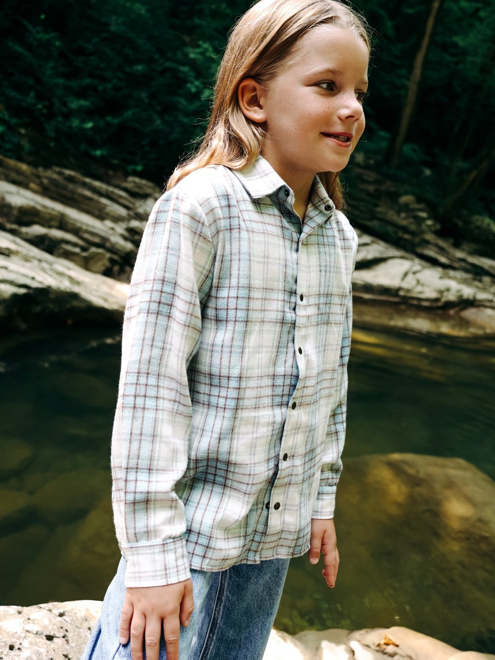 Рубашка силуэта овер-сайз из фланели. Спущеная линия плеча, центральная застежка на кнопки.