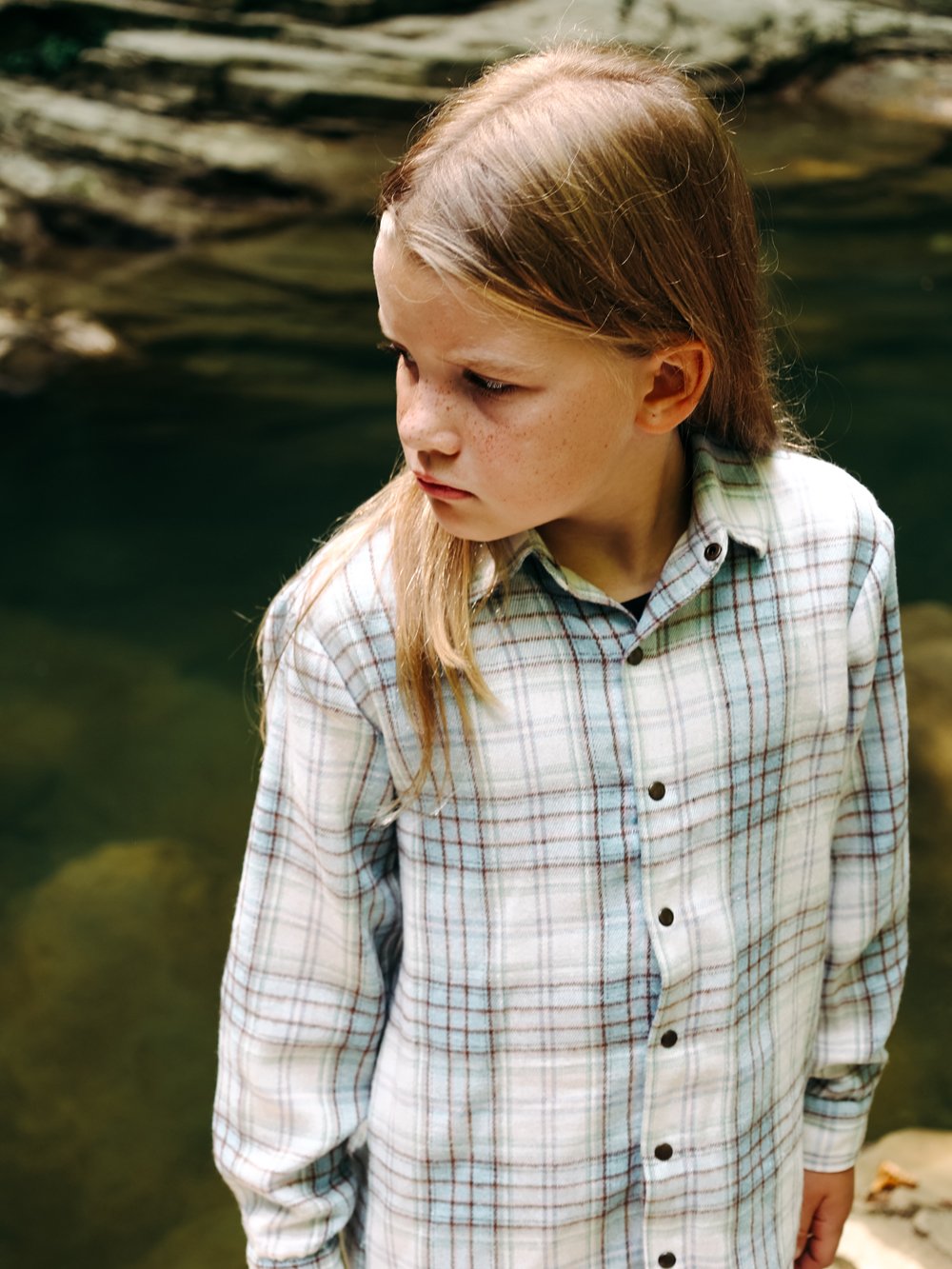 Рубашка силуэта овер-сайз из фланели. Спущеная линия плеча, центральная застежка на кнопки.