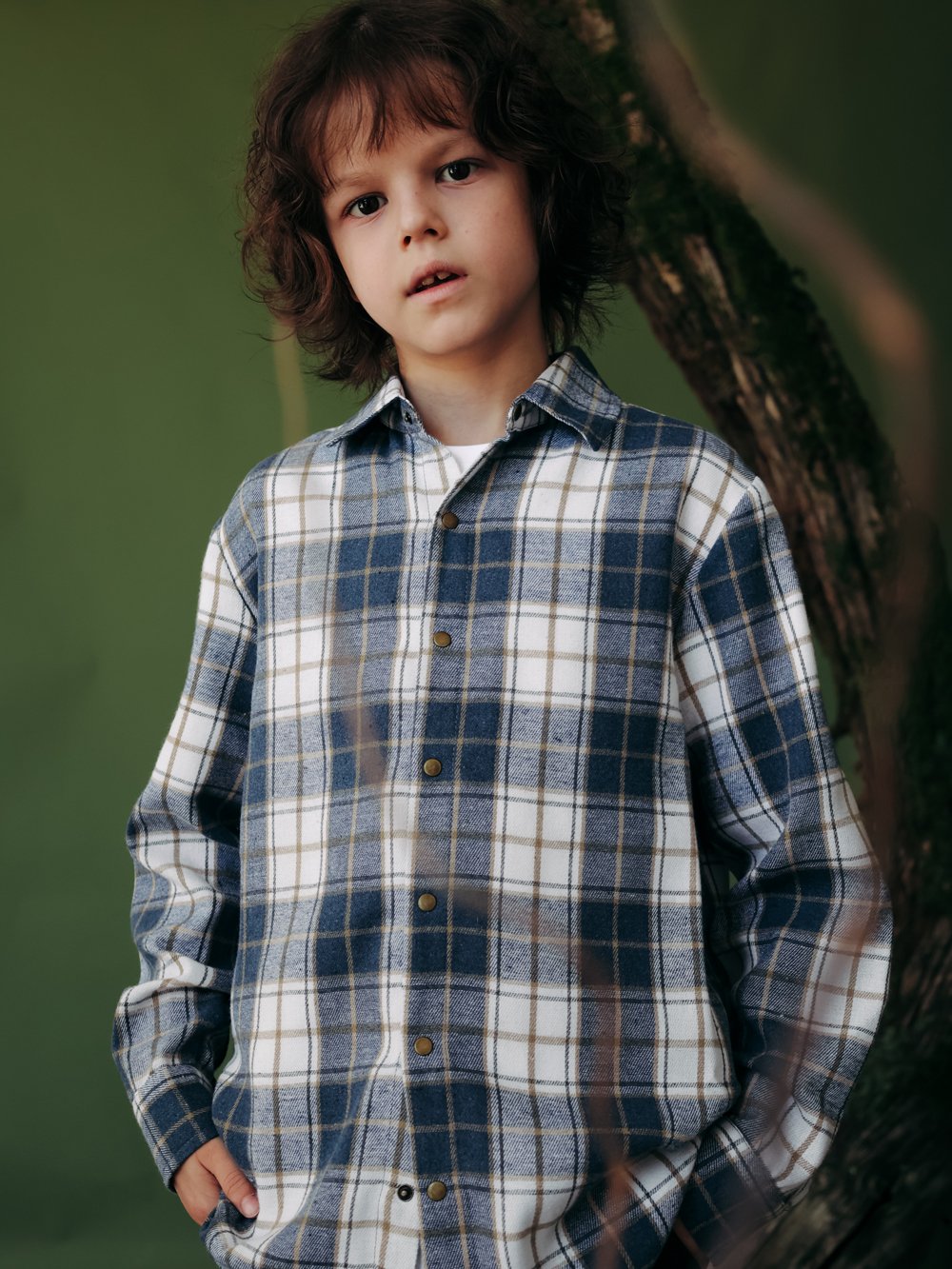 Рубашка силуэта овер-сайз из фланели. Спущеная линия плеча, центральная застежка на кнопки.