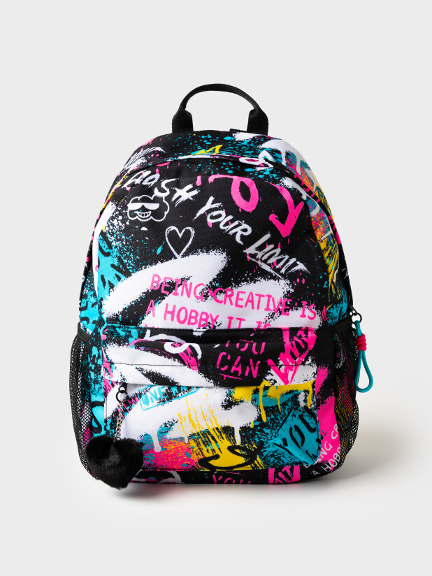 Легкий яркий рюкзак с уплотненной вентилируемой спинкой для девочки подростка. Модель выполнена из качественной и плотной водонепроницаемой ткани оксфорд. Молния имеет защитный клапан от попадания воды. Рюкзак для школы имеет одно отделение с различными карманами внутри для систематизации школьных принадлежностей. Спереди большой кармана на молнии. По бокам также есть карманы. Широкие мягкие вентилируемые лямки регулируются по высоте. У рюкзака есть ручка для ношения в руке и для того, чтобы его можно было вешать на вешалку. Ранец имеет светоотражающие детали на лямках. Молнии декорированы стильными навесами. Рюкзак в школу можно дополнить мешком для обуви и пеналом в том же дизайне. Размер рюкзака: 30*40*15 см. Вес рюкзака: 560 гр