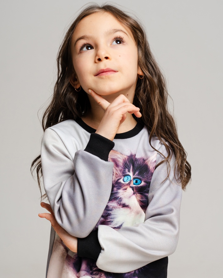 Свитшот для девочки, которая любит комфортную одежду и оригинальные дизайнерские принты. Мамы в поисках необычных вещей точно оценят наш подход к созданию рисунков — над ними работает целая команда художников. Детская кофта сделана из интерлока. Это двухслойный материал, в котором хлопок прилегает к телу, а полиэстер снаружи отвечает за стойкость принта. Благодаря современным технологиям печати рисунки со временем не изнашиваются, а остаются такими же яркими и красочными. Принты обрамляют однотонные манжеты из кашкорсе — трикотажная ткань, которая устойчива к стиркам и хорошо сохраняет форму, не растягиваясь и не обвисая. Кофта для девочки имеет свободный комфортный крой и отлично вписывается в базовый гардероб. 50% хлопок, 50% полиэстер