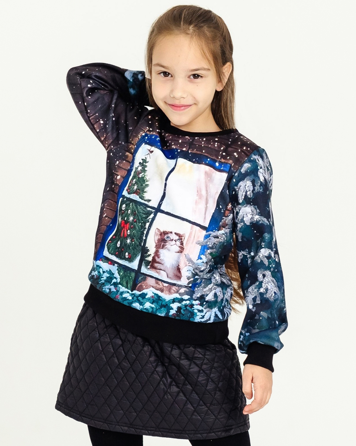 Свитшот для девочки, которая любит комфортную одежду и оригинальные дизайнерские принты. Мамы в поисках необычных вещей точно оценят наш подход к созданию рисунков — над ними работает целая команда художников. Детская кофта сделана из интерлока. Это двухслойный материал, в котором хлопок прилегает к телу, а полиэстер снаружи отвечает за стойкость принта. Благодаря современным технологиям печати рисунки со временем не изнашиваются, а остаются такими же яркими и красочными. Принты обрамляют однотонные манжеты из кашкорсе — трикотажная ткань, которая устойчива к стиркам и хорошо сохраняет форму, не растягиваясь и не обвисая. Кофта для девочки имеет свободный комфортный крой и отлично вписывается в базовый гардероб. 50% хлопок, 50% полиэстер