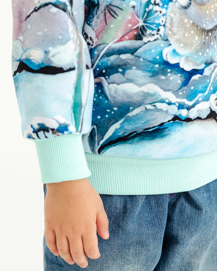 Свитшот для девочки, которая любит комфортную одежду и оригинальные дизайнерские принты. Мамы в поисках необычных вещей точно оценят наш подход к созданию рисунков — над ними работает целая команда художников. Детская кофта сделана из интерлока. Это двухслойный материал, в котором хлопок прилегает к телу, а полиэстер снаружи отвечает за стойкость принта. Благодаря современным технологиям печати рисунки со временем не изнашиваются, а остаются такими же яркими и красочными. Принты обрамляют однотонные манжеты из кашкорсе — трикотажная ткань, которая устойчива к стиркам и хорошо сохраняет форму, не растягиваясь и не обвисая. Кофта для девочки имеет свободный комфортный крой и отлично вписывается в базовый гардероб. 50% хлопок, 50% полиэстер