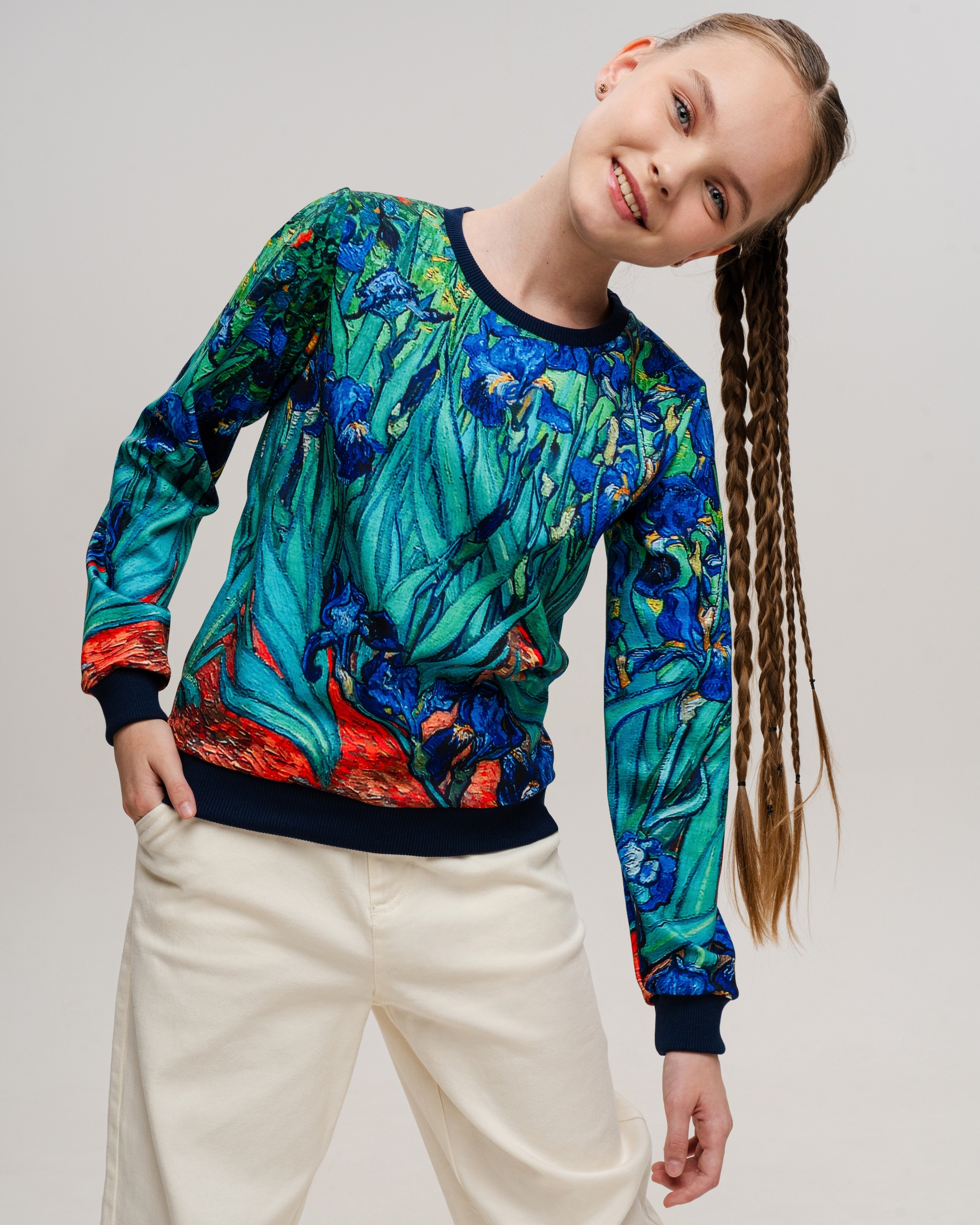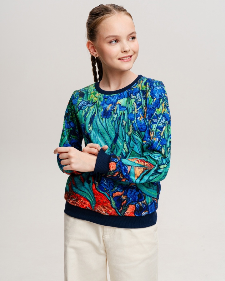 Свитшот для девочки, которая любит комфортную одежду и оригинальные дизайнерские принты. Мамы в поисках необычных вещей точно оценят наш подход к созданию рисунков — над ними работает целая команда художников. Детская кофта сделана из интерлока. Это двухслойный материал, в котором хлопок прилегает к телу, а полиэстер снаружи отвечает за стойкость принта. Благодаря современным технологиям печати рисунки со временем не изнашиваются, а остаются такими же яркими и красочными. Принты обрамляют однотонные манжеты из кашкорсе — трикотажная ткань, которая устойчива к стиркам и хорошо сохраняет форму, не растягиваясь и не обвисая. Кофта для девочки имеет свободный комфортный крой и отлично вписывается в базовый гардероб. 50% хлопок, 50% полиэстер