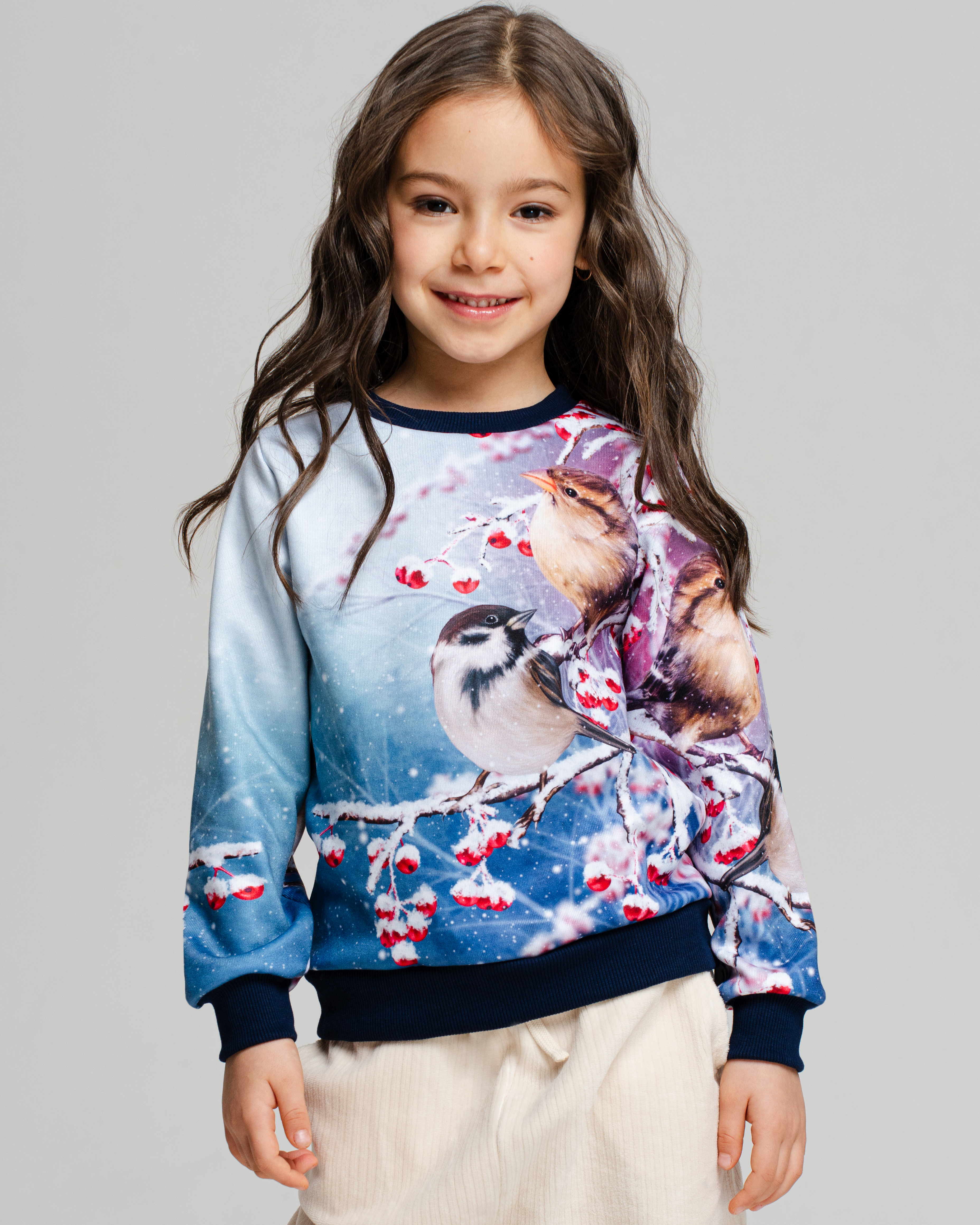 Свитшот для девочки, которая любит комфортную одежду и оригинальные дизайнерские принты. Мамы в поисках необычных вещей точно оценят наш подход к созданию рисунков — над ними работает целая команда художников. Детская кофта сделана из интерлока. Это двухслойный материал, в котором хлопок прилегает к телу, а полиэстер снаружи отвечает за стойкость принта. Благодаря современным технологиям печати рисунки со временем не изнашиваются, а остаются такими же яркими и красочными. Принты обрамляют однотонные манжеты из кашкорсе — трикотажная ткань, которая устойчива к стиркам и хорошо сохраняет форму, не растягиваясь и не обвисая. Кофта для девочки имеет свободный комфортный крой и отлично вписывается в базовый гардероб. 50% хлопок, 50% полиэстер