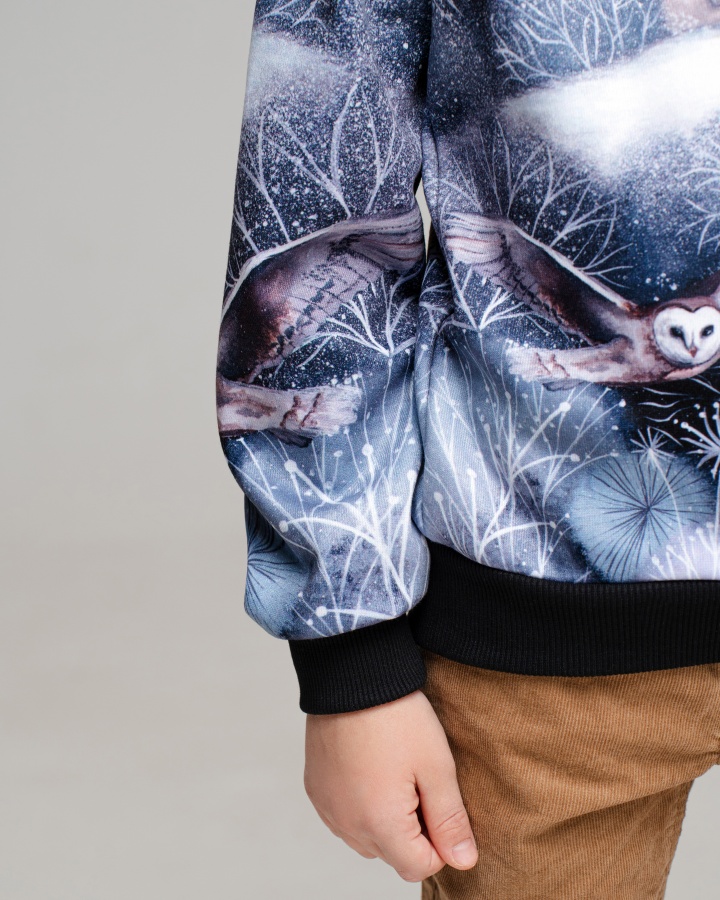 Свитшот для девочки, которая любит комфортную одежду и оригинальные дизайнерские принты. Мамы в поисках необычных вещей точно оценят наш подход к созданию рисунков — над ними работает целая команда художников. Детская кофта сделана из интерлока. Это двухслойный материал, в котором хлопок прилегает к телу, а полиэстер снаружи отвечает за стойкость принта. Благодаря современным технологиям печати рисунки со временем не изнашиваются, а остаются такими же яркими и красочными. Принты обрамляют однотонные манжеты из кашкорсе — трикотажная ткань, которая устойчива к стиркам и хорошо сохраняет форму, не растягиваясь и не обвисая. Кофта для девочки имеет свободный комфортный крой и отлично вписывается в базовый гардероб. 50% хлопок, 50% полиэстер