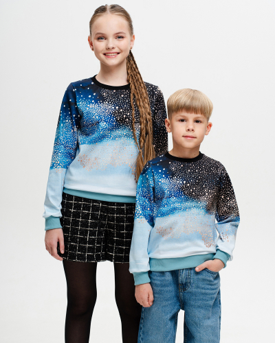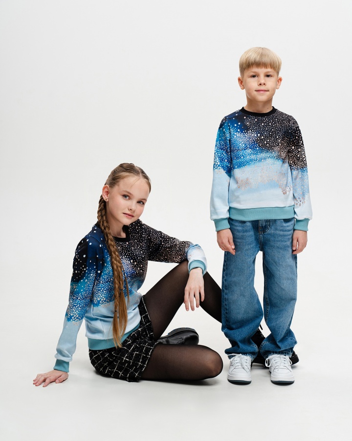 Свитшот для девочки, которая любит комфортную одежду и оригинальные дизайнерские принты. Мамы в поисках необычных вещей точно оценят наш подход к созданию рисунков — над ними работает целая команда художников. Детская кофта сделана из интерлока. Это двухслойный материал, в котором хлопок прилегает к телу, а полиэстер снаружи отвечает за стойкость принта. Благодаря современным технологиям печати рисунки со временем не изнашиваются, а остаются такими же яркими и красочными. Принты обрамляют однотонные манжеты из кашкорсе — трикотажная ткань, которая устойчива к стиркам и хорошо сохраняет форму, не растягиваясь и не обвисая. Кофта для девочки имеет свободный комфортный крой и отлично вписывается в базовый гардероб. 50% хлопок, 50% полиэстер