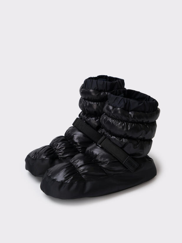 Эти утепленные подростковые сапожки чуни для девочек можно надевать на балетки, пуанты, носки или босую ногу — они легко садятся и не сковывают движений. Внутренняя подкладка позволяет быстро переобуться прямо в зале, а мягкий утеплитель удерживает тепло без утяжеления стопы. Такая модель особенно актуальна во время ожидания между выходами во время соревнований.