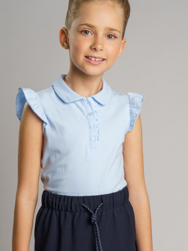 Модный синий сарафан с сетчатой оборкой в школу для девочки от PlayToday — удобная и эффектная альтернатива повседневному школьному платью.