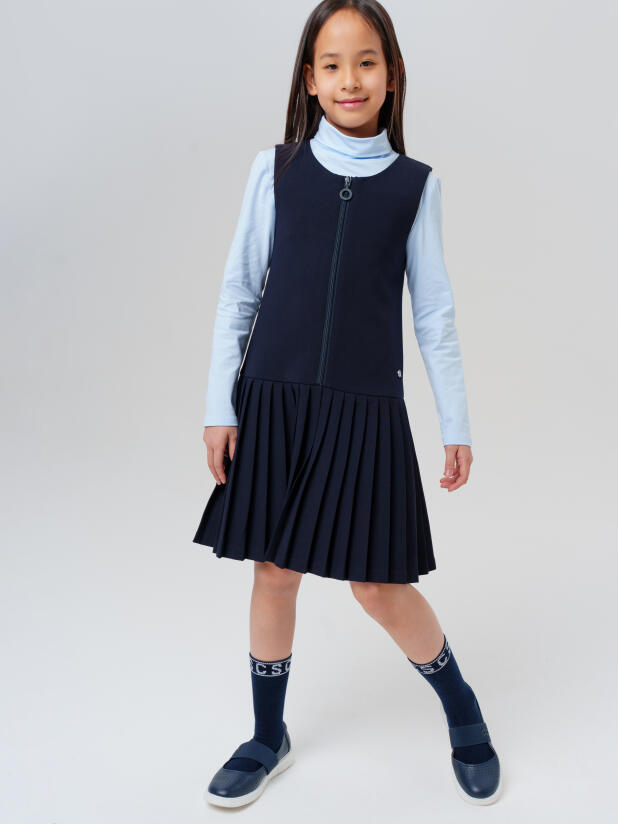 Совет по стилю: сочетайте нарядный школьный сарафан для подростков с водолазкой или рубашкой с воротничком, добавьте жакет или жилет от PlayToday — получится элегантный образ на каждый школьный день.