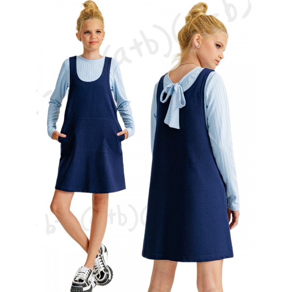 Школьный трикотажный сарафан для активных девчонок! Свободная модель с карманами "кенгуру", из хлопкового трикотажа ( футер нити высшего качества 95% хлопка). Обратите внимание-  с сарафаном можно надеть и обычную белую футболку, или водолазку; и разнообразные модные блузоны с пышными рукавами. Сарафан свободного кроя отлично подойдет девочкам худощавого и нормального телосложения. На нашей модели, худощавого телосложения - размер 152-158, ее рост на момент фотосъемки - 155 см. Приятных Вам покупок, надеемся товары нашего бренда, Вам доставят исключительно положительные эмоции.