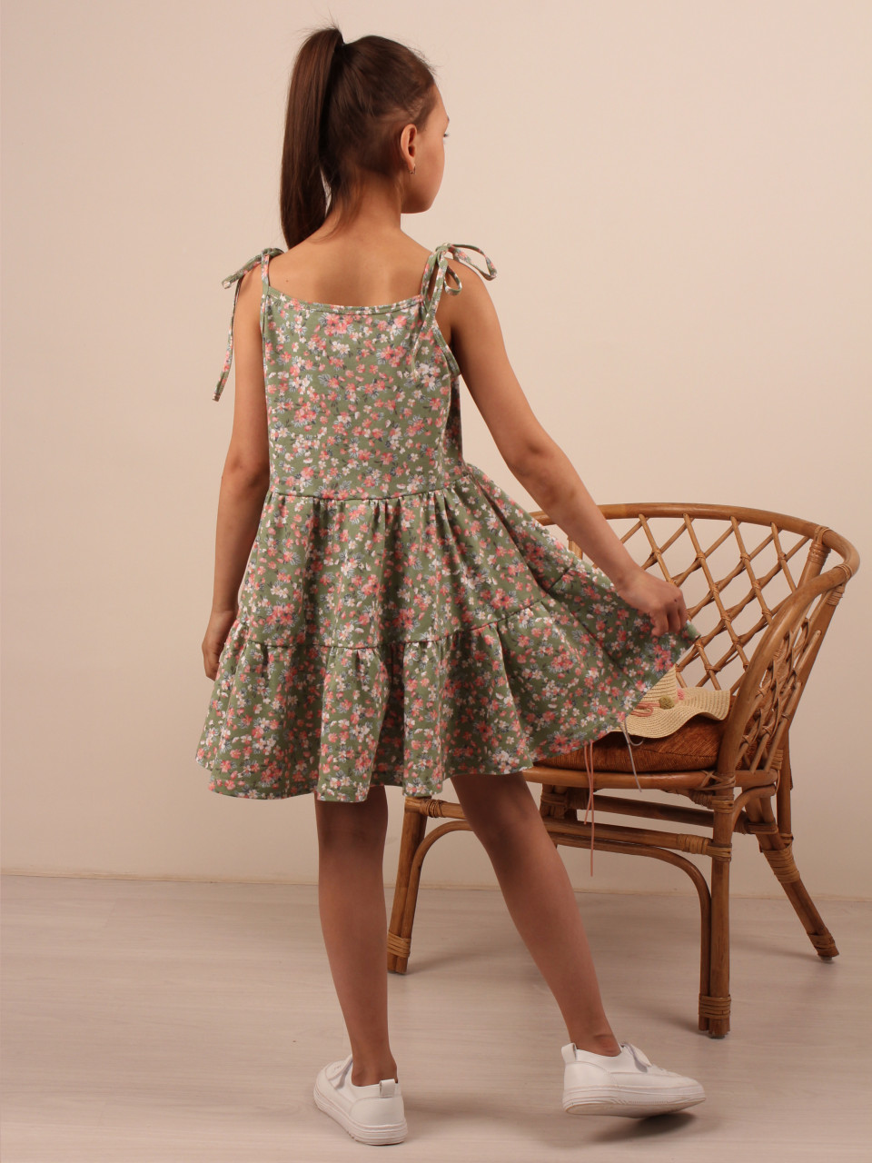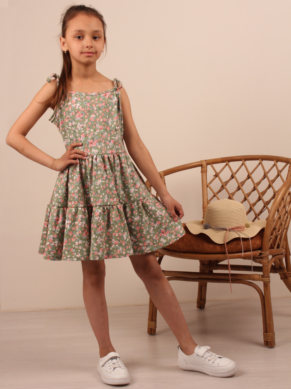 Нарядное платье сарафан для девочки на бретелях-завязках с открытыми плечами – идеальные вариант детской одежды на лето. Сарафан летний для девочки в яркой летней расцветке не стесняет движений и помогает сохранять активность в течении всего дня. Пошито из нежного трикотажного полотна высокого качества, из натурального 100% хлопка, хб. Сарафан подойдет как наряд на праздник, на день рождения, на прогулку, в детский садик, как одежда для дома и одежда для улицы, для отдыха, для активных игр и занятий спортом, на каждый день, в подарок. Базовая детская вещь незаменима для детского гардероба. Легкое летнее платье подарит вашему ребенку мягкость, уют и комфорт. Детский сарафан легко регулируется лямками по длинне, и за счет этого сарафан можно носить не один сезон. Его можно сочетать с футболкой или лонгсливом в прохладную погоду или в детский сад.