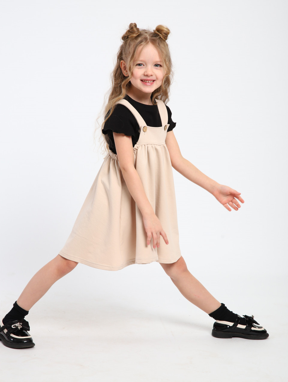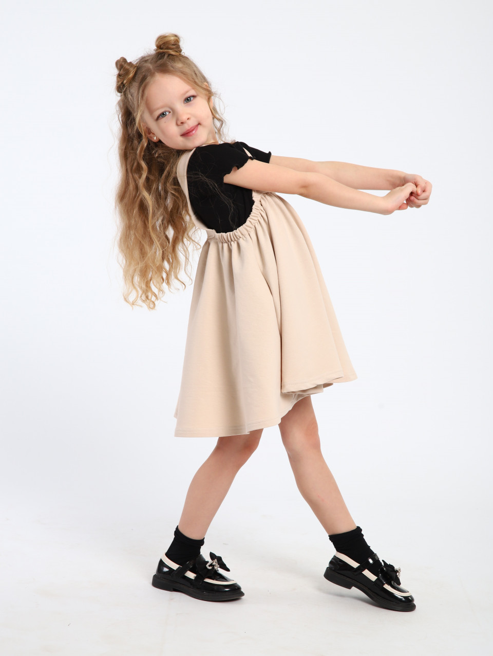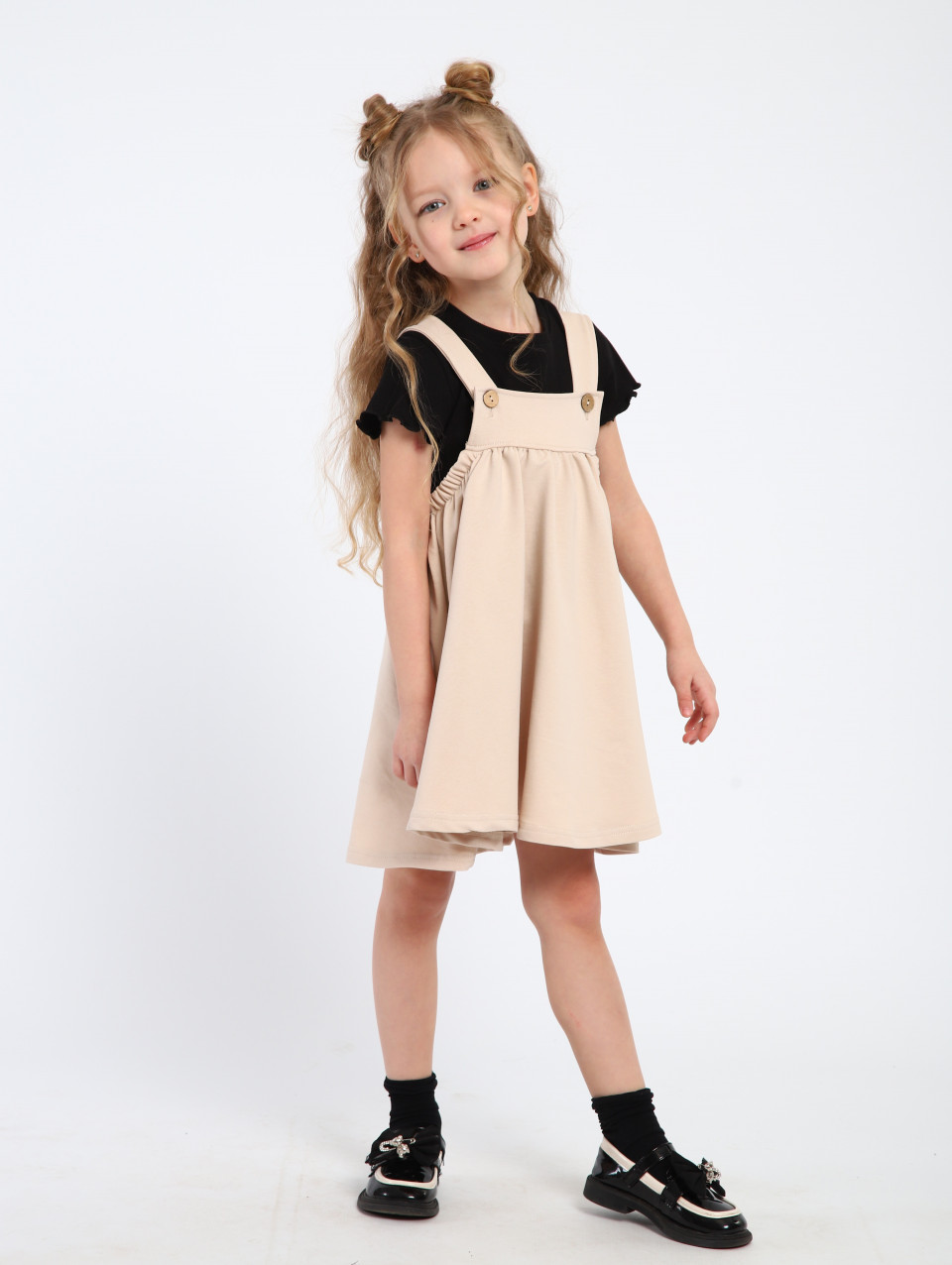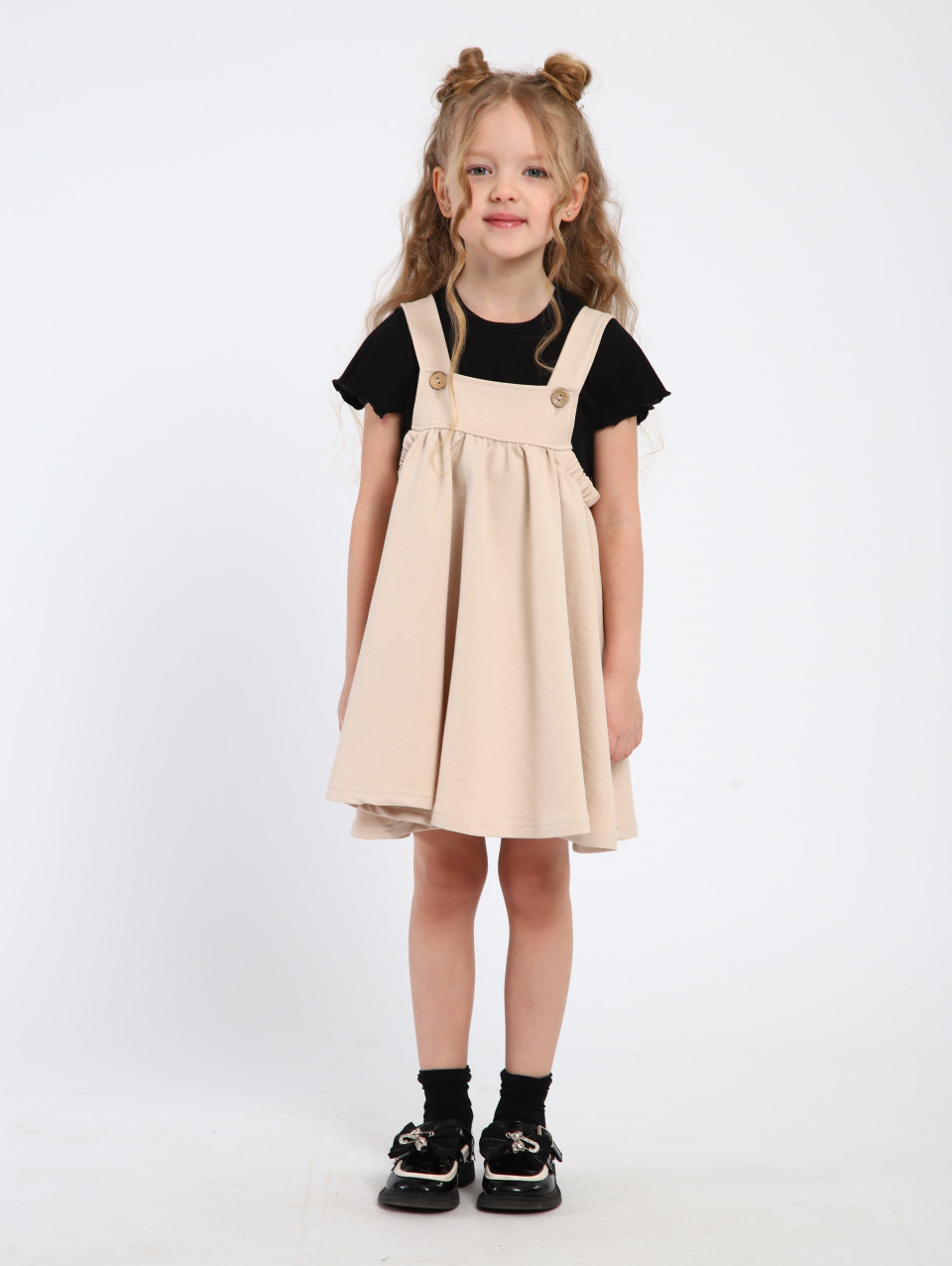 Сарафан имеет легкий и свободный крой, что не стесняет движений и позволяет ребенку чувствовать себя комфортно. Он может быть выполнен с регулируемыми бретелями или иметь завязки на плечах, что позволяет подогнать его по размеру и обеспечивает дополнительное удобство