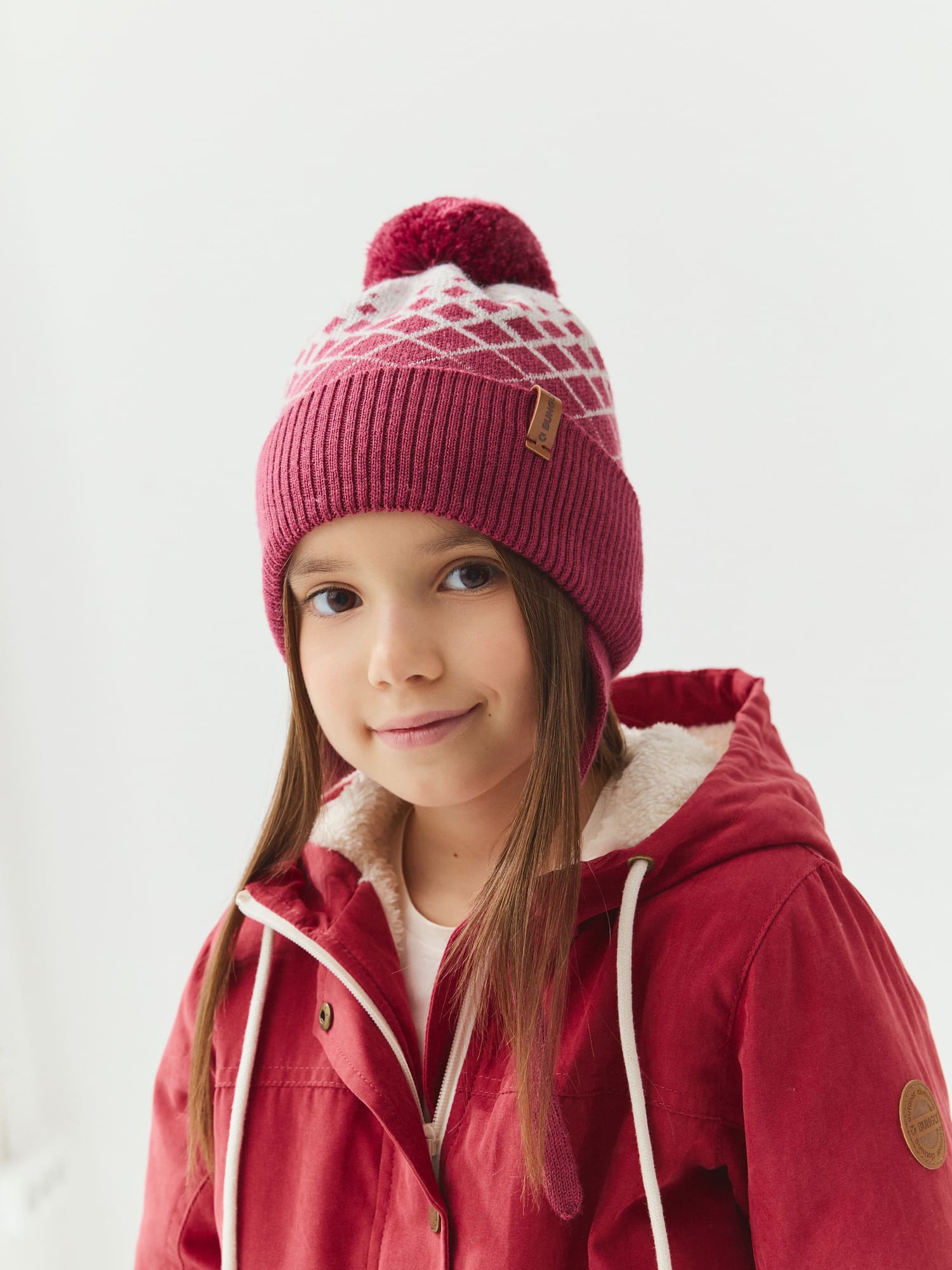 Шапка из смесовой шерсти "Ромбы фуксия"