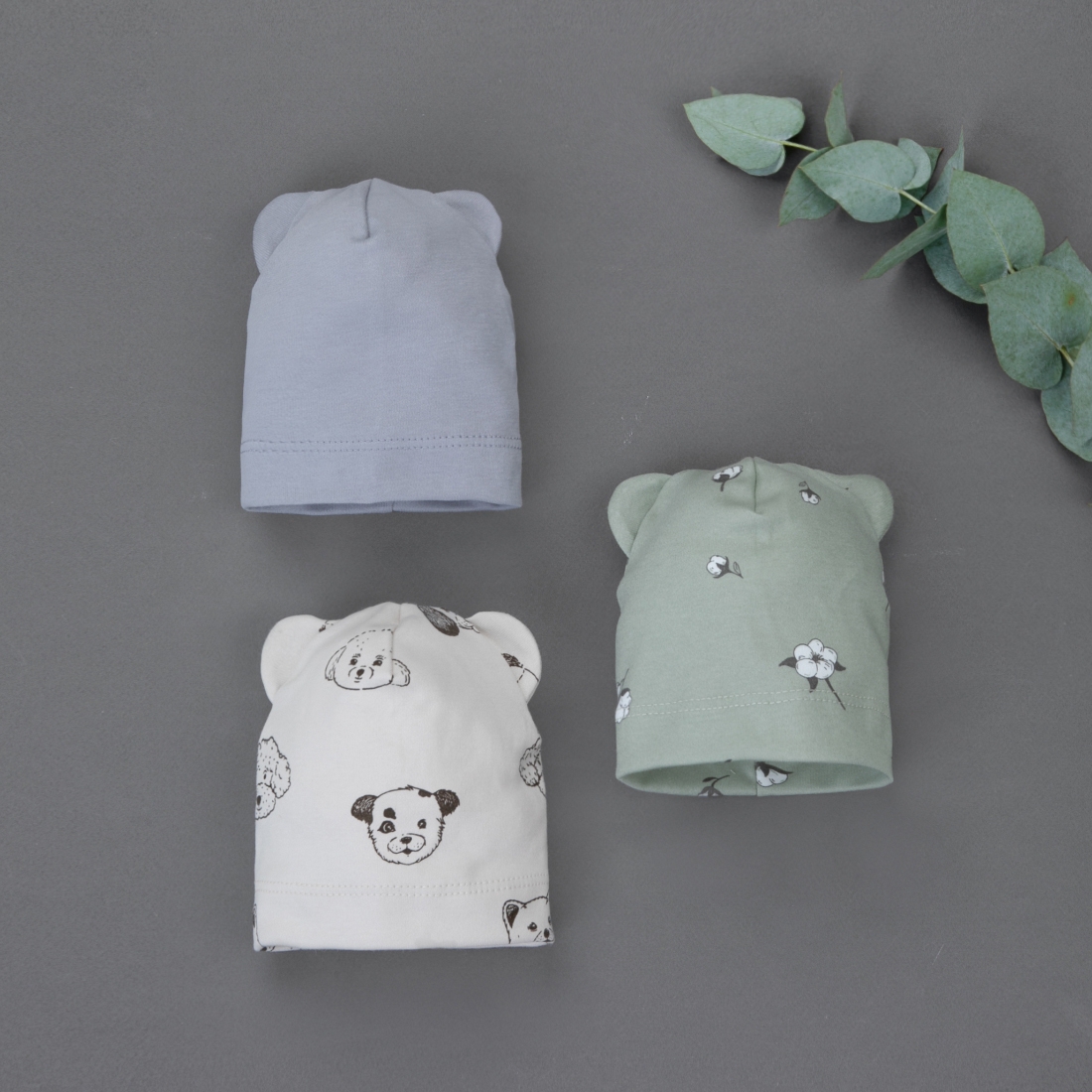 Шапочка легкая с отворотом и ушками "Мягкий Хлопок", 3 шт/уп