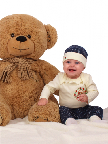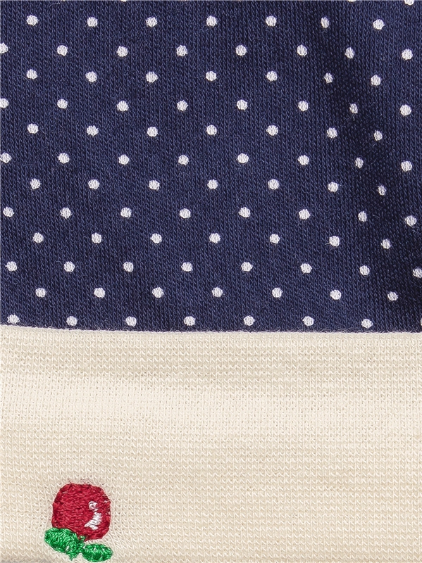 интерлок / хлопок 100% - / белый горошек на синем / Яблочко вышивка