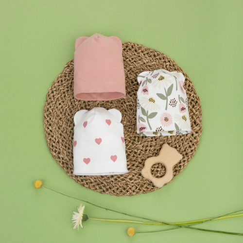 Шапочка легкая с отворотом и ушками "Любимые ромашки", 3 шт/уп