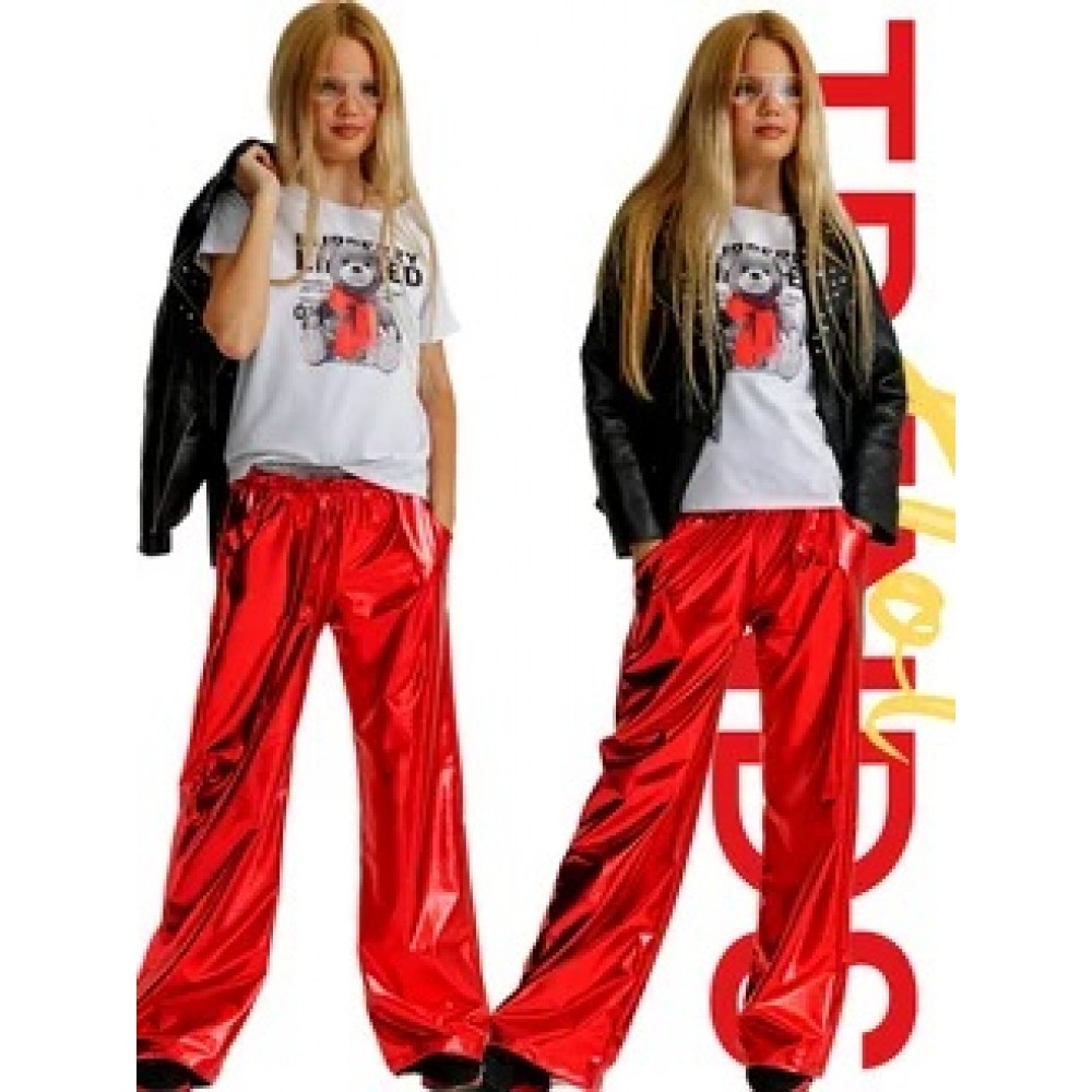Широкие брюки с эффектом металлик красные