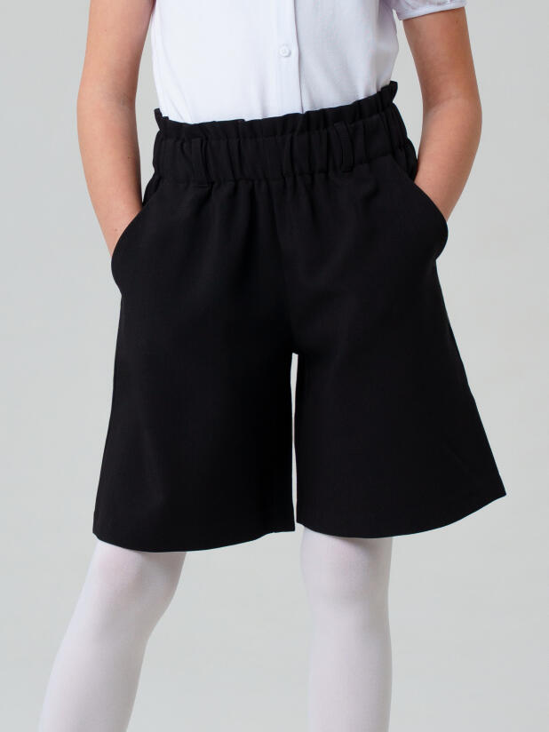 Классические чёрные школьные текстильные шорты non iron свободного силуэта для девочки подростка от PlayToday — элегантное и удобное решение для тёплого времени года. Лаконичный дизайн и практичная ткань делают модель универсальной: подойдёт как для уроков, так и для школьных мероприятий.