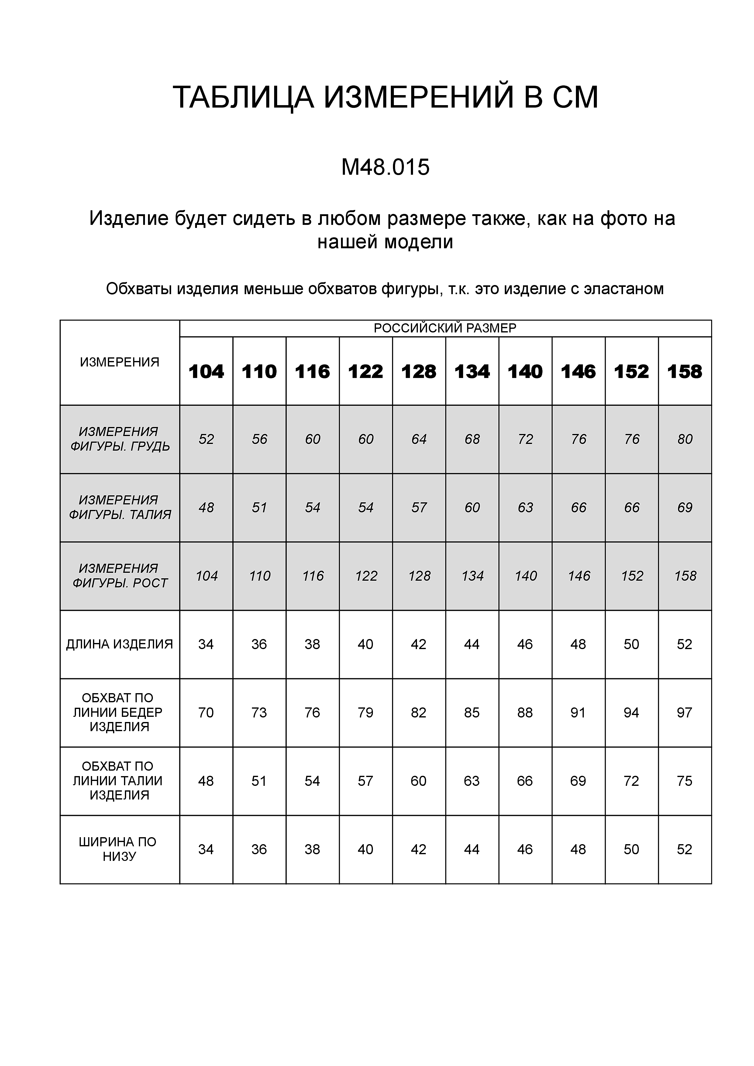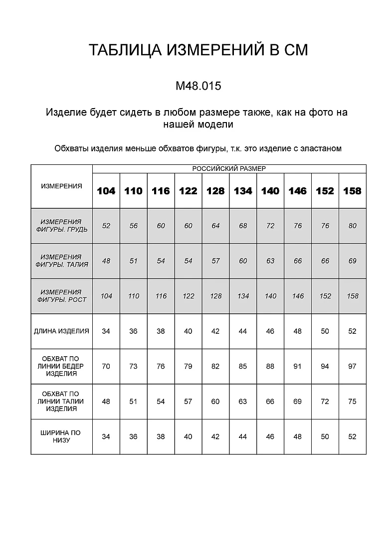 В верхней части таблицы выложена размерная сетка, смотрите нижнюю часть таблицы - там даны замеры изделия. Замеры в нерастянутом состоянии