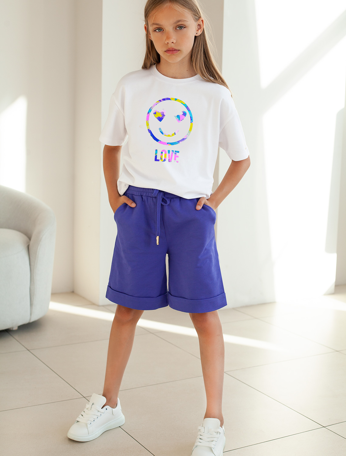 Свободные шорты с карманами, выполнены из премиального облегченного футера. Мягкое трикотажное полотно создаст приятное прилегание к телу. Модная форма подарит комфорт и сделает образ ребенка стильным. С футболкой F49.403 шорты составят отличный комплект, мотивирующий на движение!