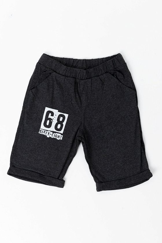 Шорты для мальчика, с принтом и карманами по бокам. Низ оформлен отворотами, пояс на резине. Выполнены из хлопкового полотна.