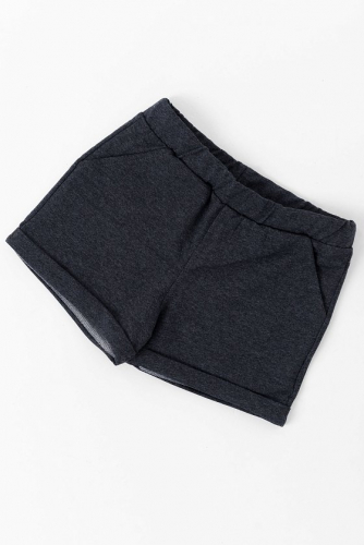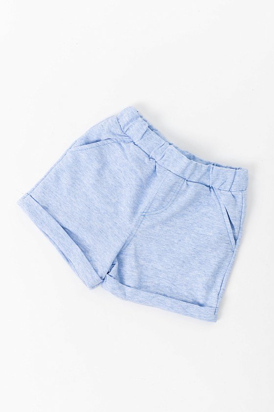 Шорты выполнены из футер петли. Низ шорт оформлен отворотами, пояс на резине, по бокам размещены карманы.