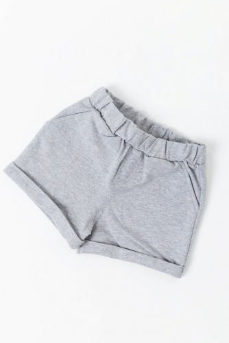Шорты выполнены из футер петли. Низ шорт оформлен отворотами, пояс на резине, по бокам размещены карманы.