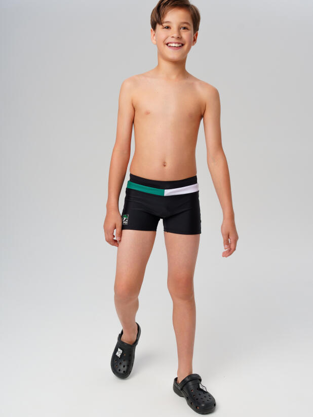 Универсальные черные подростковые плавки для мальчиков выполнены из современного быстросохнущего материала с отличной воздухопроницаемостью и эластичностью. Это обеспечивает комфорт до, во время и после занятий. Внутренний регулируемый шнурок помогает точно подогнать модель под фигуру ребёнка и исключает соскальзывание во время активного плавания.