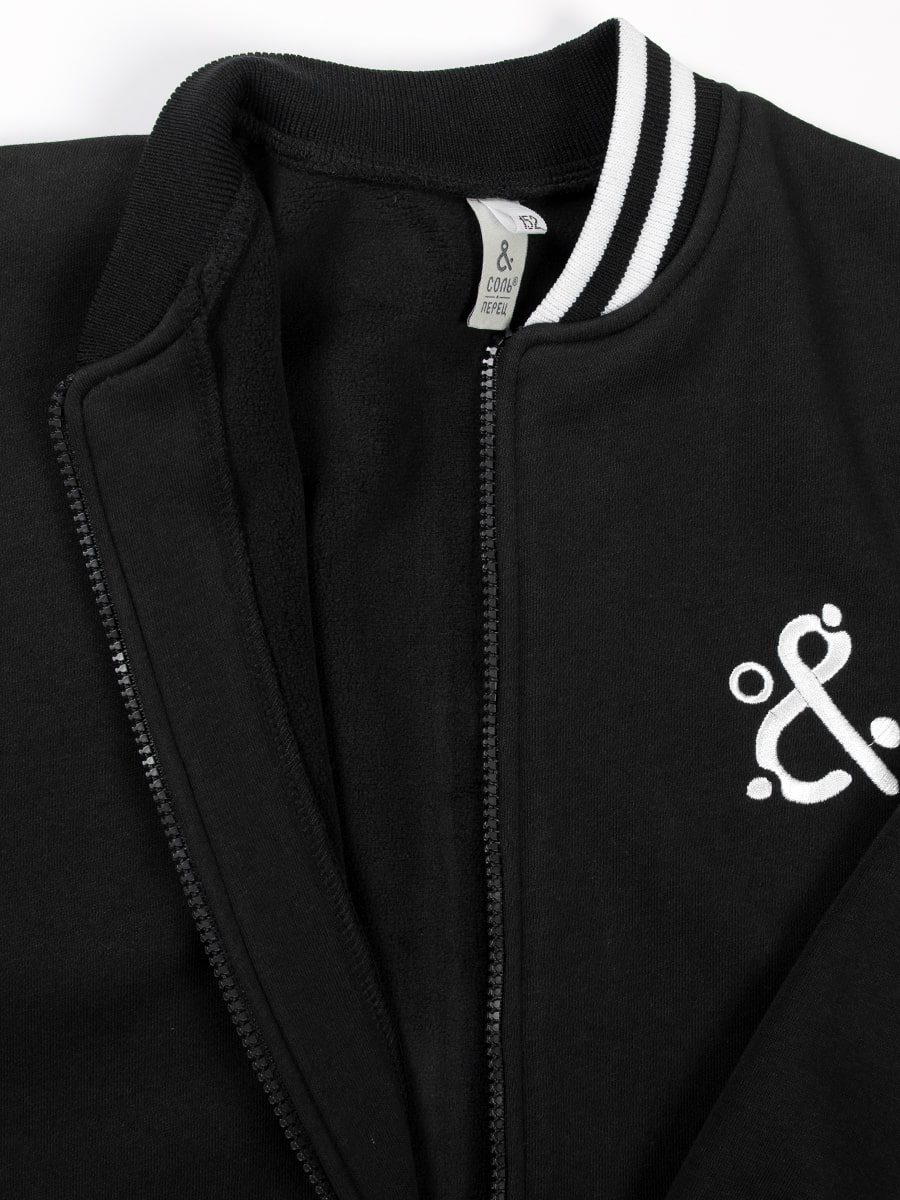 Бомбер утепленный Соль&Перец на молнии, свободного кроя оверсайз. На рукавах и по низу изделия широкие эластичные манжеты. Плотный и эластичный трикотаж лининг с начёсом хорошо пропускает воздух, не теряет формы, способен удерживать тепло. Модель прекрасно подчеркнет индивидуальный, школьный образ.