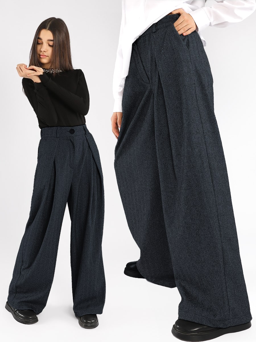 Брюки для девочки утепленные Соль&Перец. Модель имеет расширяющийся от бедра силуэт, что визуально вытягивает фигуру. Брюки застёгиваются на молнию и пуговицу, сзади в пояс вшита резинка. Брюки прекрасно сочетаются с любым верхом, и подойдут для любого мероприятия, подчеркнут индивидуальный стиль девочки, и разнообразят ее повседневный школьный образ.