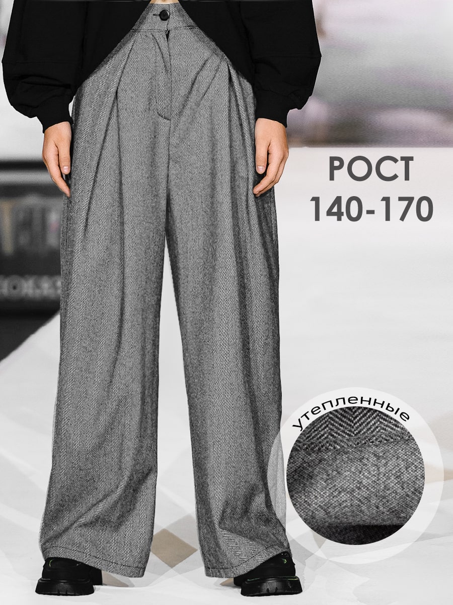 Брюки для девочки утепленные Соль&Перец. Модель имеет расширяющийся от бедра силуэт, что визуально вытягивает фигуру. Брюки застёгиваются на молнию и пуговицу, сзади в пояс вшита резинка. Брюки прекрасно сочетаются с любым верхом, и подойдут для любого мероприятия, подчеркнут индивидуальный стиль девочки, и разнообразят ее повседневный школьный образ.