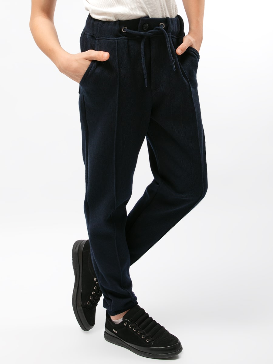 Брюки для мальчика Соль&Перец. Модель на широкой резинке с кулиской и боковыми карманами, с прошитыми стрелками, выполнена из плотного трикотажа. Идеально сочетается с джемперами любого фасона и подойдет как для школы, так и для торжественного мероприятия.