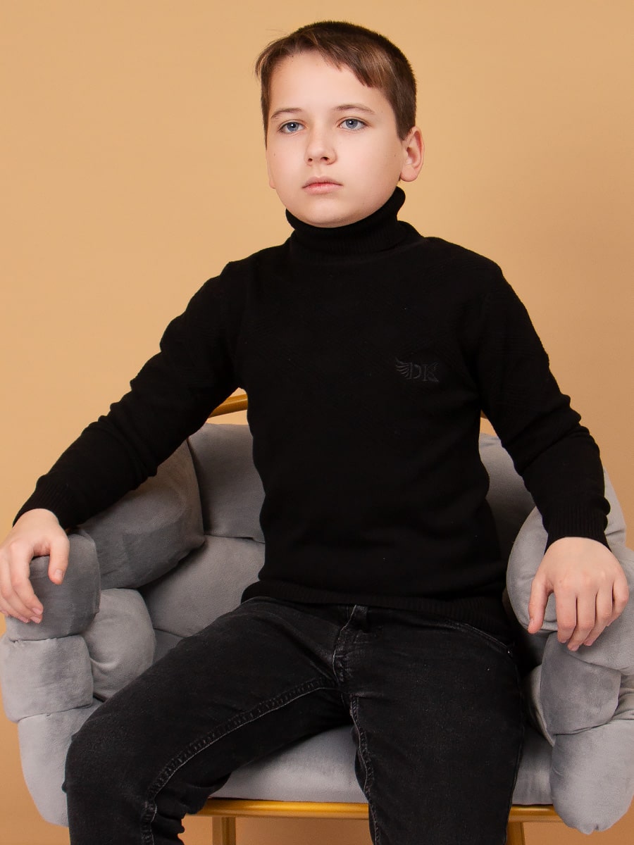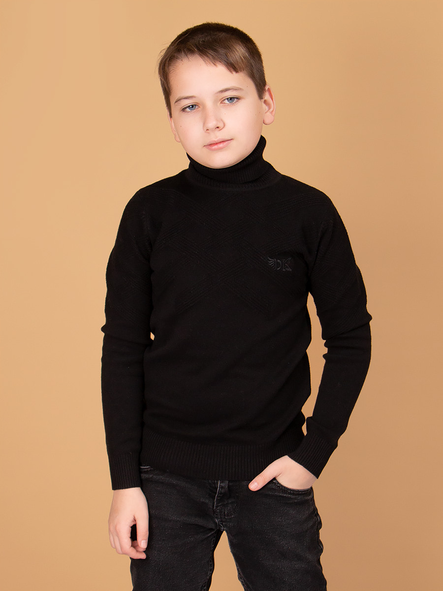 Теплый джемпер-водолазка для мальчика. Модель декорирована рельефным узором и вышитой эмблемой. Мягкий, вязаный трикотаж не сковывает движений, обладает хорошей гигроскопичностью и воздухопроницаемостью, приятный к телу. Классический, однотонный джемпер - это незаменимая вещь в гардеробе каждого мальчика.