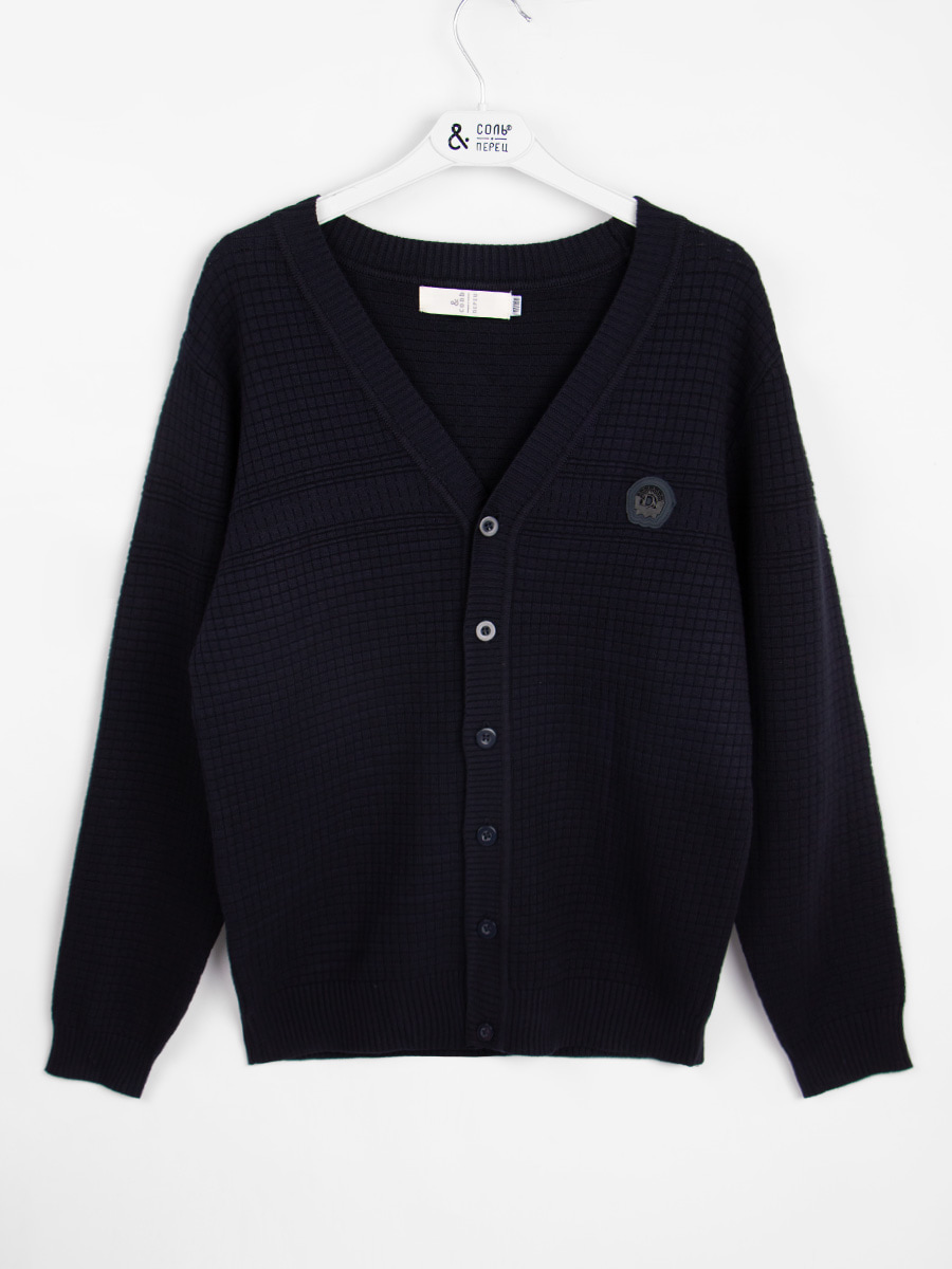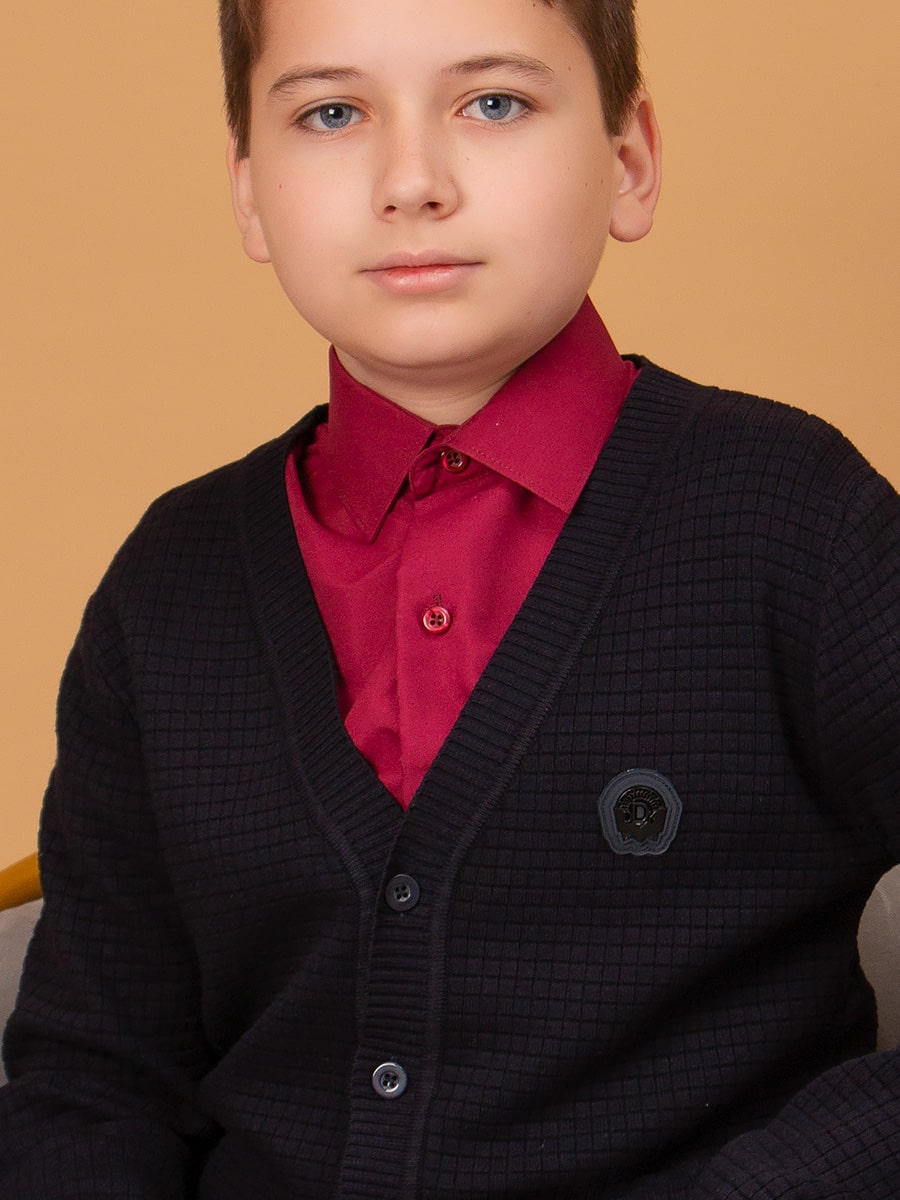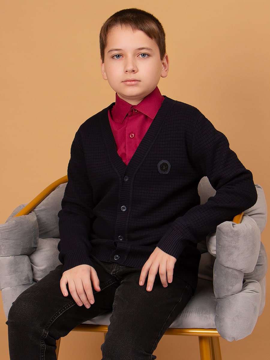 Стильный, трикотажный кардиган на пуговицах для мальчика. Мягкий, вязаный трикотаж не сковывает движений, обладает хорошей воздухопроницаемостью и приятно облегает тело. Прекрасно вольется как в повседневный, так и в школьный гардероб.