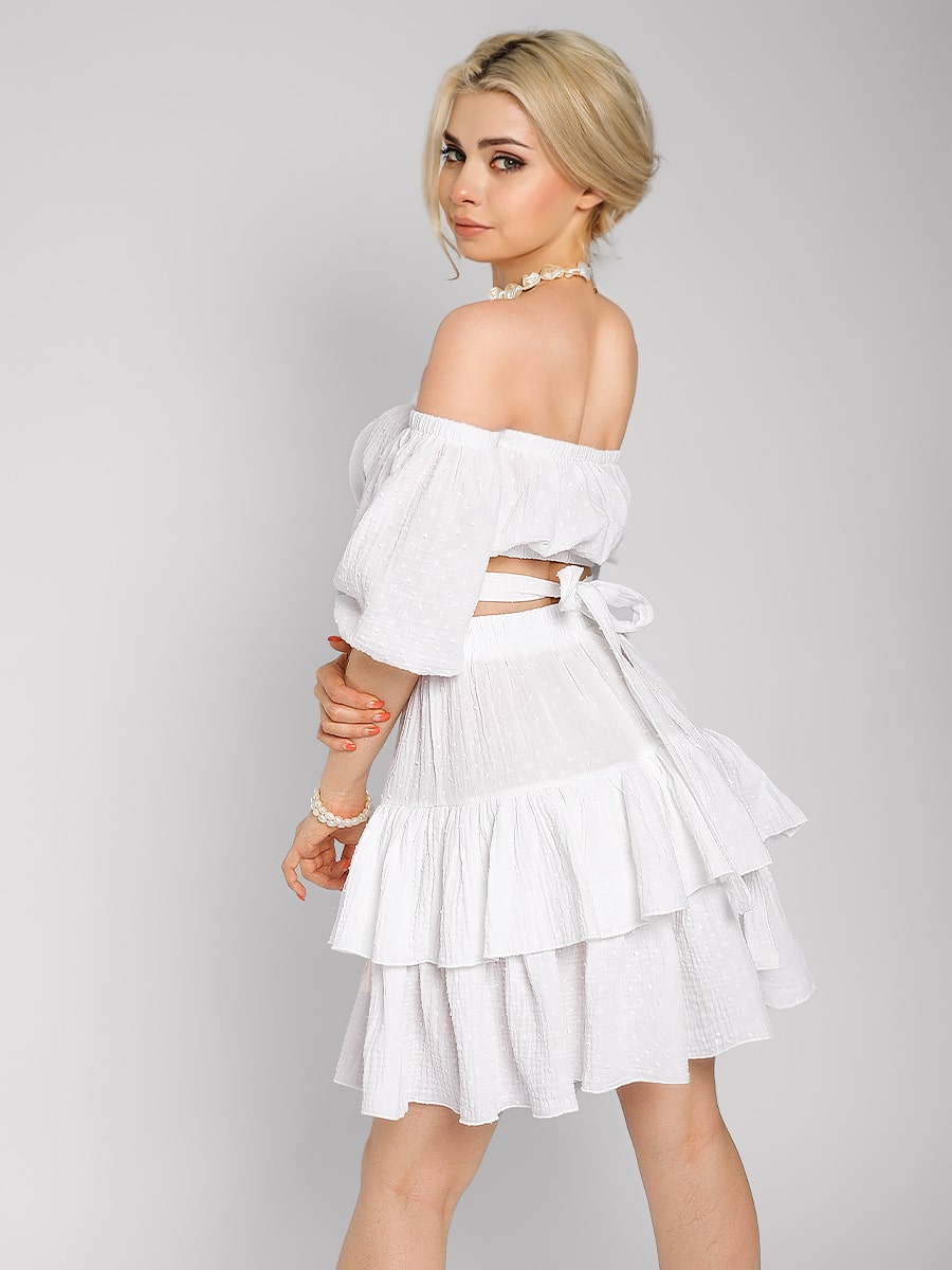 * Размер 48 длина топа 18 см, ОГ 80-94 см, длина рукава 30 см, длина завязок 98 см, длина юбки 48 см, ОТ 70-74 см.