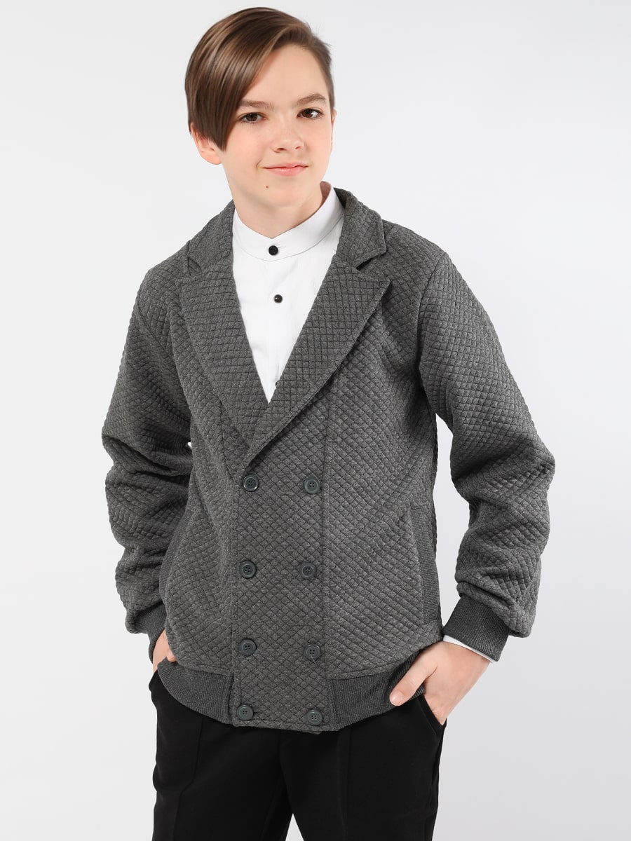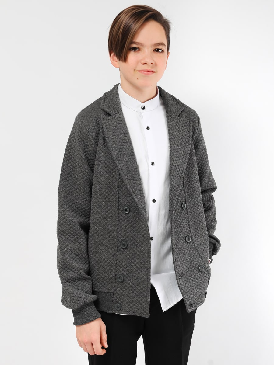 Пиджак для мальчика Соль&Перец. Рукава и низ изделия с широкими, эластичными манжетами. Модель идеально сочетается с брюками любого фасона и подойдет как для школы, так и для торжественного мероприятия.