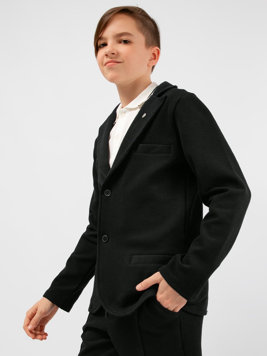 Маркетинговое описание: Пиджак для мальчика Соль&Перец. Модель идеально сочетается с брюками любого фасона и подойдет как для школы, так и для торжественного мероприятия.