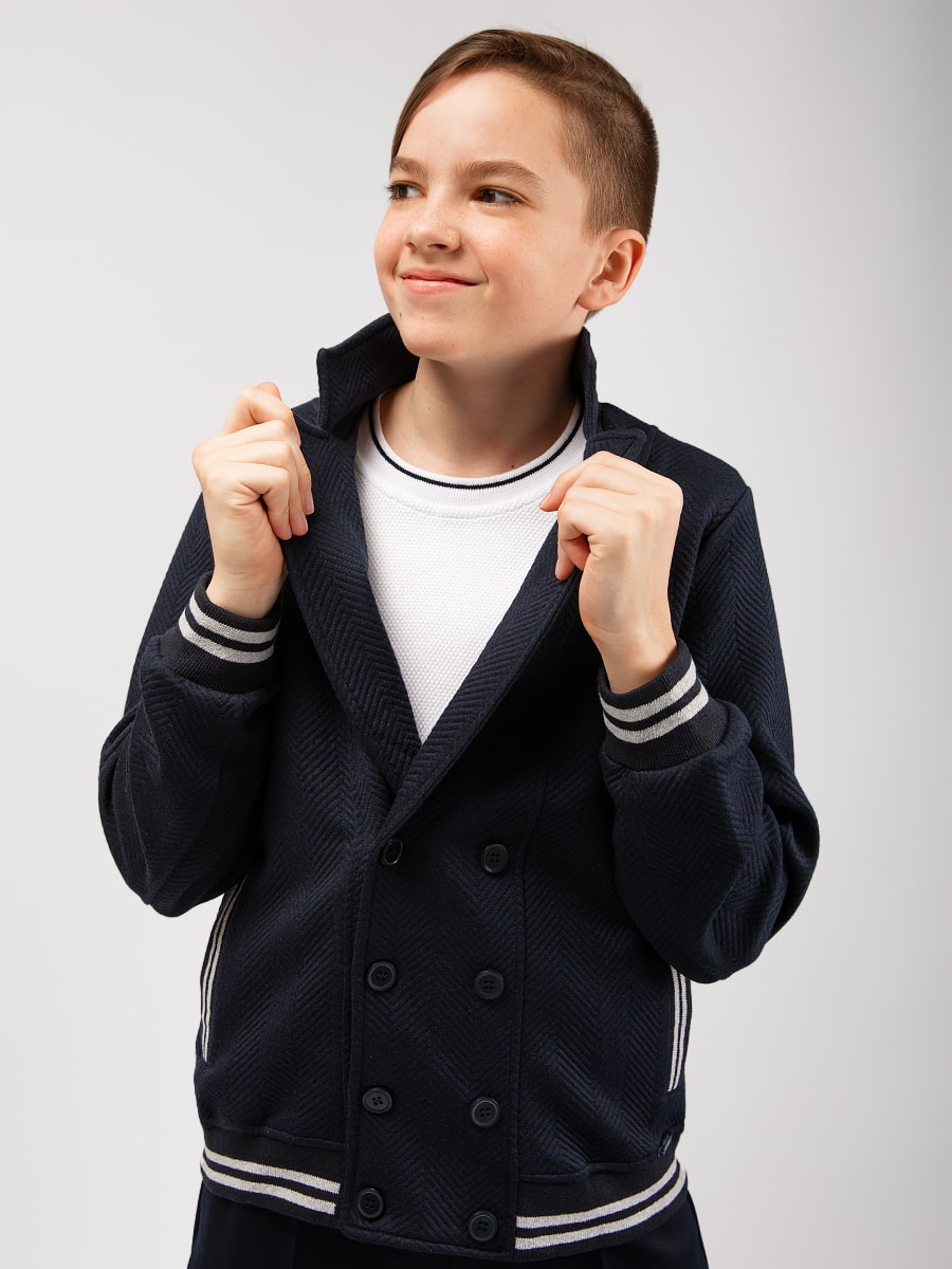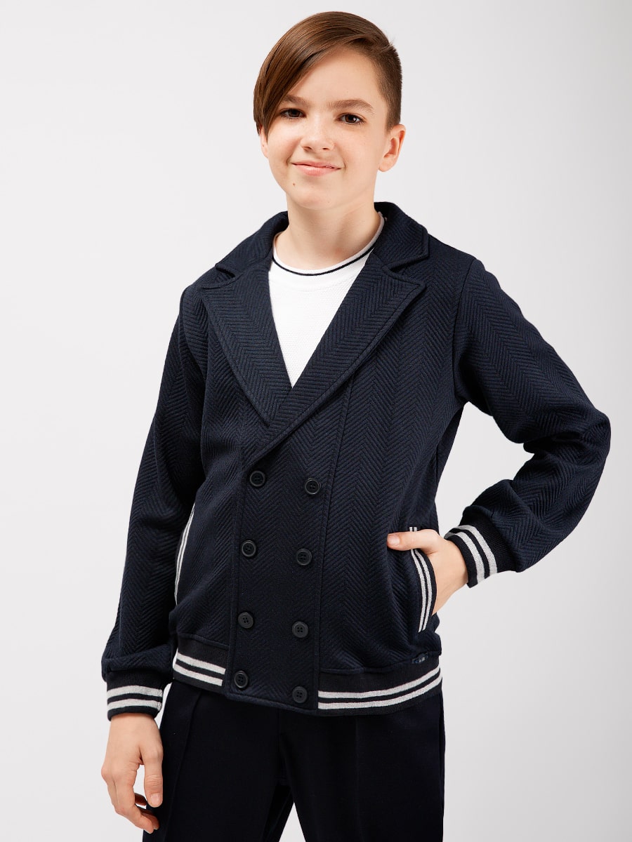Пиджак для мальчика Соль&Перец. Рукава и низ изделия с широкими, эластичными манжетами. Модель идеально сочетается с брюками любого фасона и подойдет как для школы, так и для торжественного мероприятия.