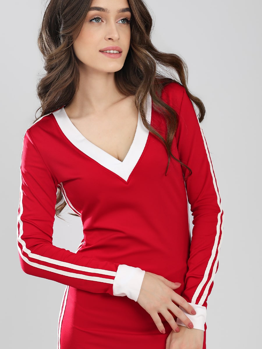 Платье Соль&Перец, в стиле спорт-шик, полуприлегающего кроя, длинное, с V-образным вырезом. Платье с лампасами контрастного цвета вдоль рукава и боковых швов. В нижней части бокового шва обработан разрез. Платье выполнено из высококачественной ткани, которая обеспечивает отличную эластичность и комфорт при движении.