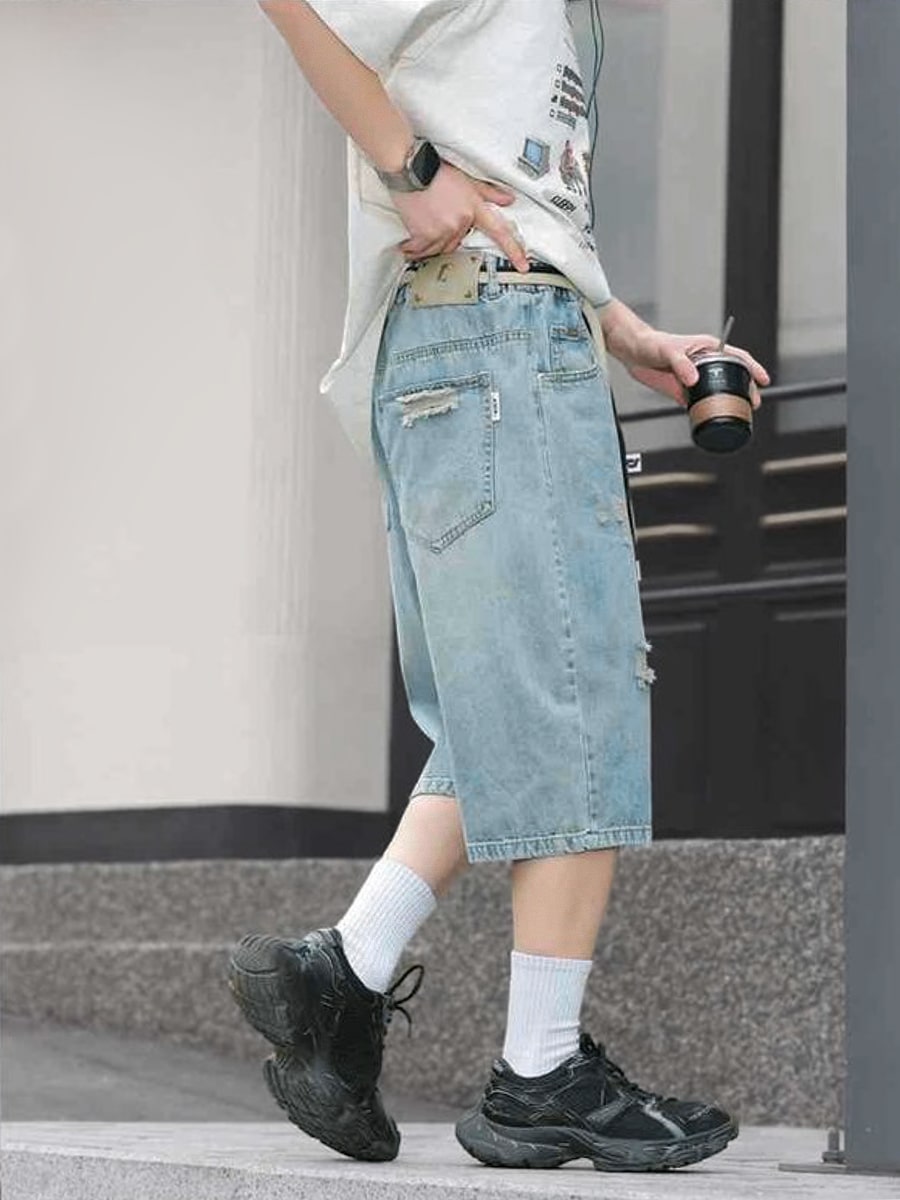 Удлинённые джинсовые шорты для детей, выполненные из хлопкового денима - прочной и износостойкой ткани, которая хорошо пропускает воздух и обеспечивает комфортную носку в жаркие дни. Они легко комбинируются с любой майкой или футболкой. Пояс на широкой, эластичной резинке, без молнии и пуговиц. Акцентные детали в виде искусственных потёртостей.