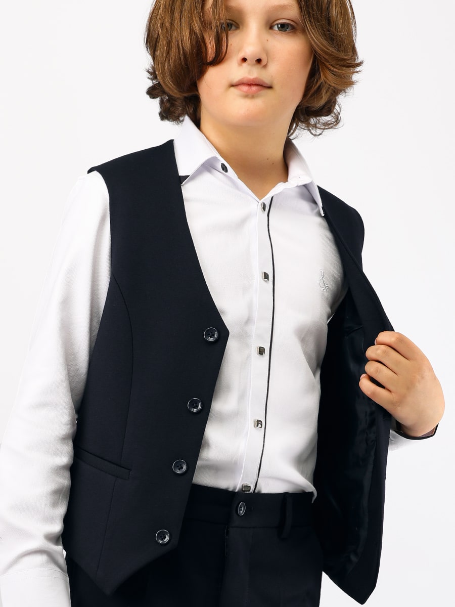 Классический, однобортный жилет для мальчика Соль&Перец. Жилет с подкладом, выполнен из износостойкой трикотажной ткани которая долго сохраняет форму и привлекательный внешний вид. Подойдёт для посещения школы, официального или праздничного мероприятия.