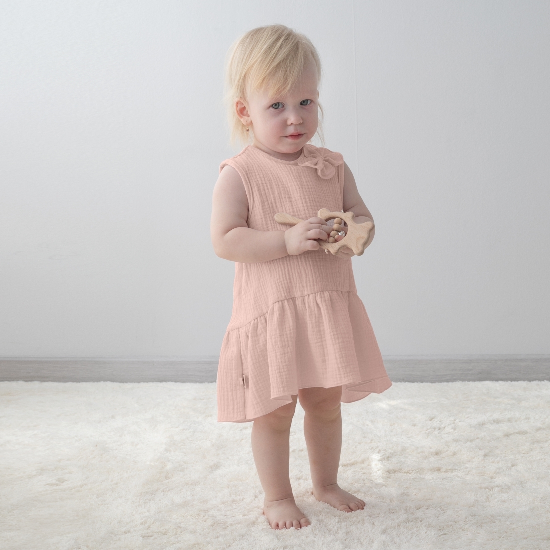 Сорочка летняя для девочки, с воланом "Муслин", пудра